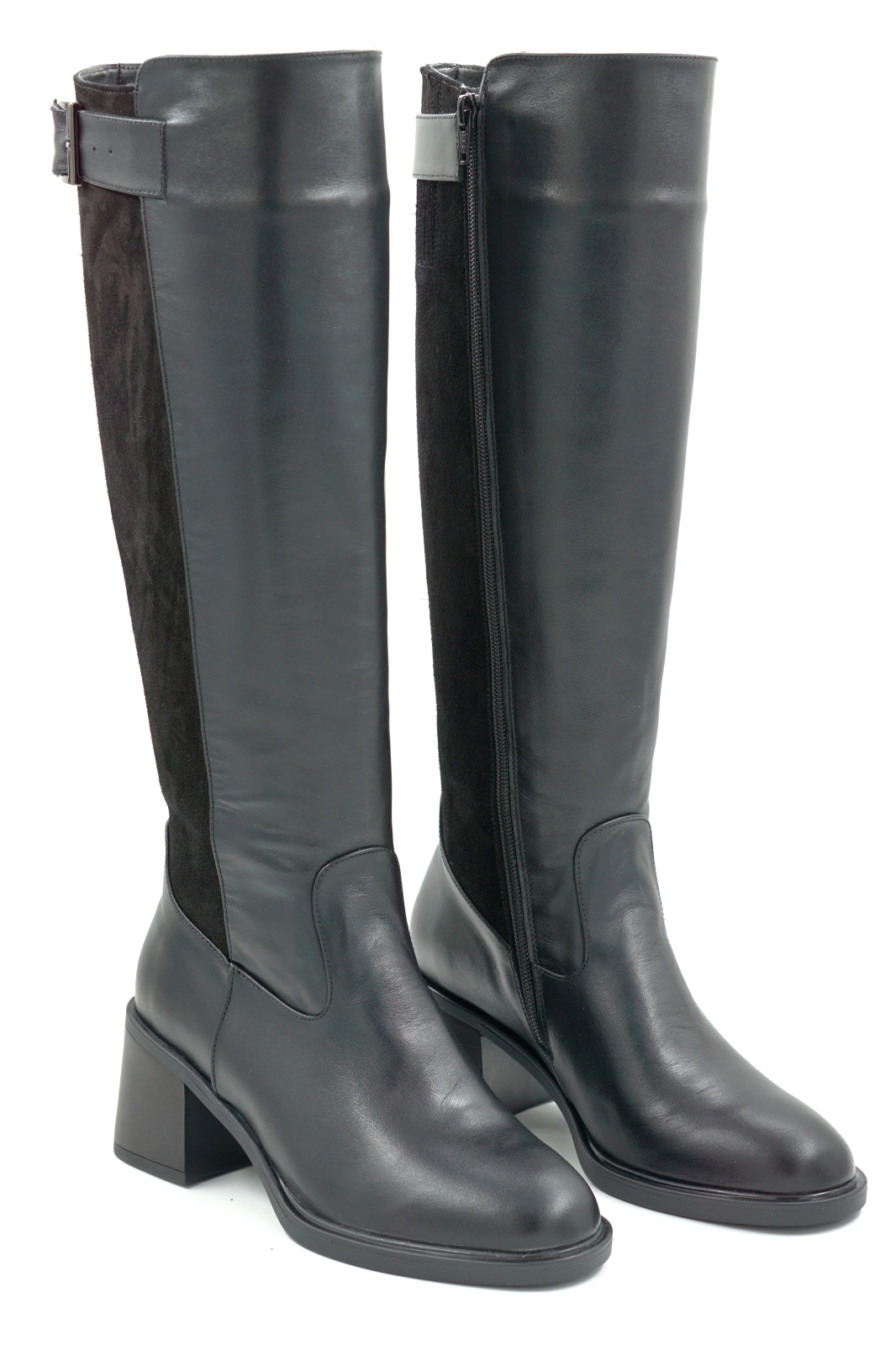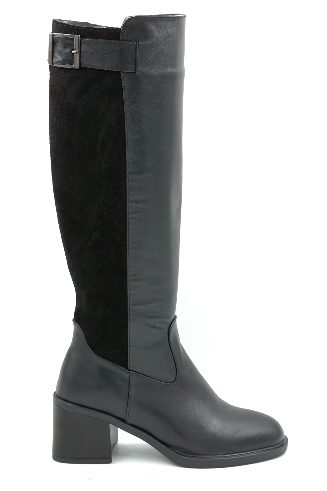 Cizme dama din piele naturala neagra cu varf rotund si toc mic gros de 6 cm 76121-25