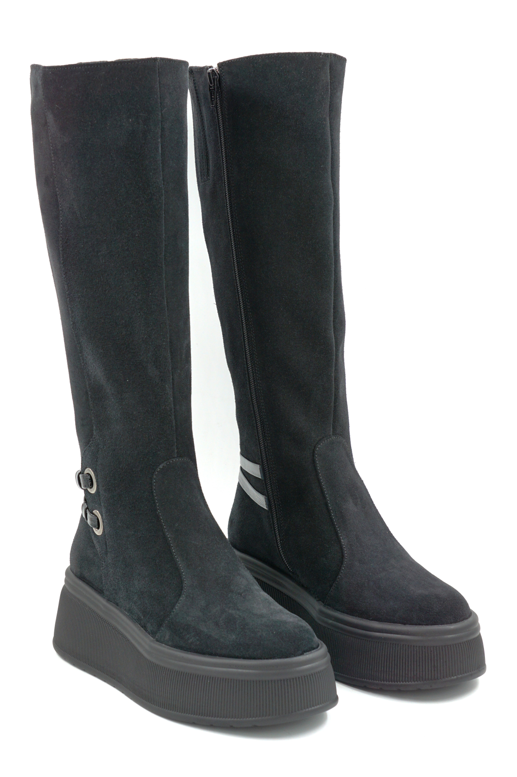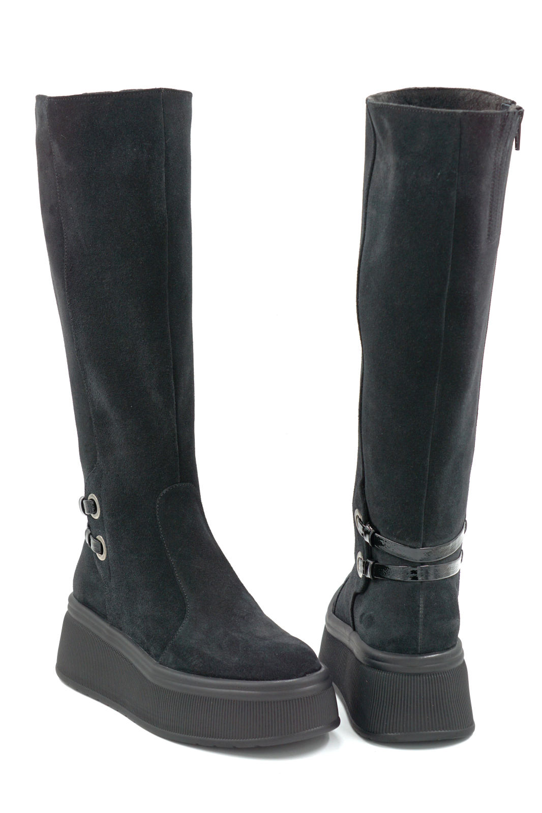 Cizme dama din piele naturala intoarsa neagra