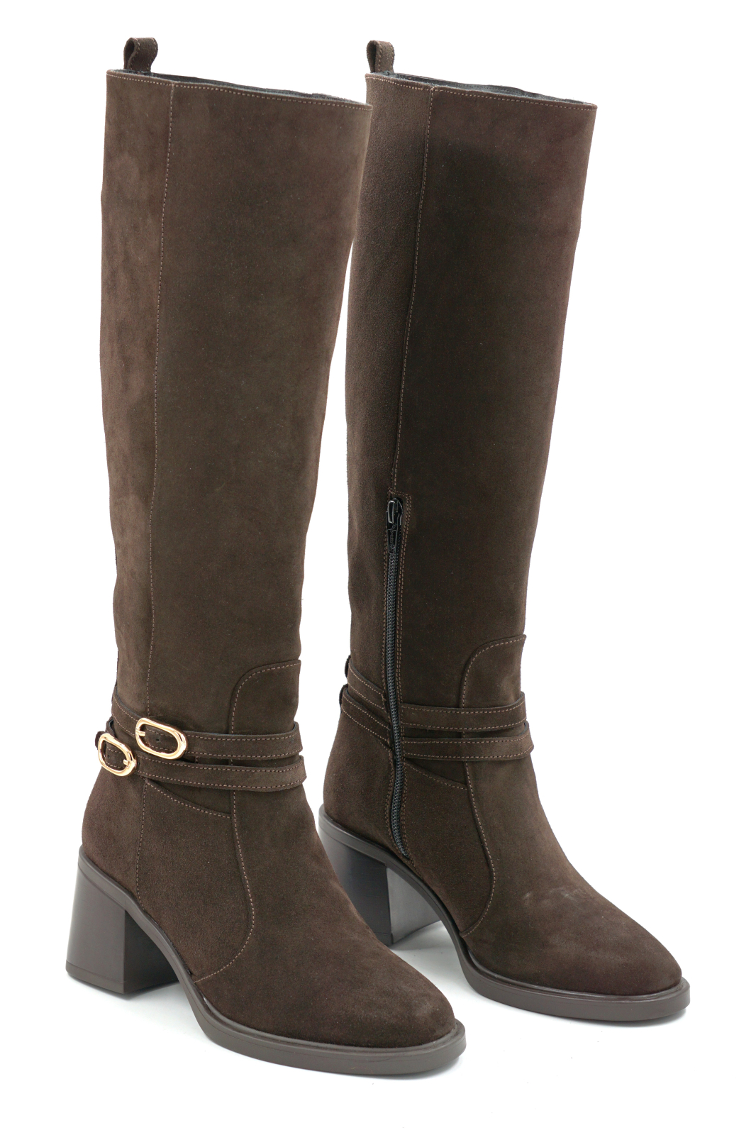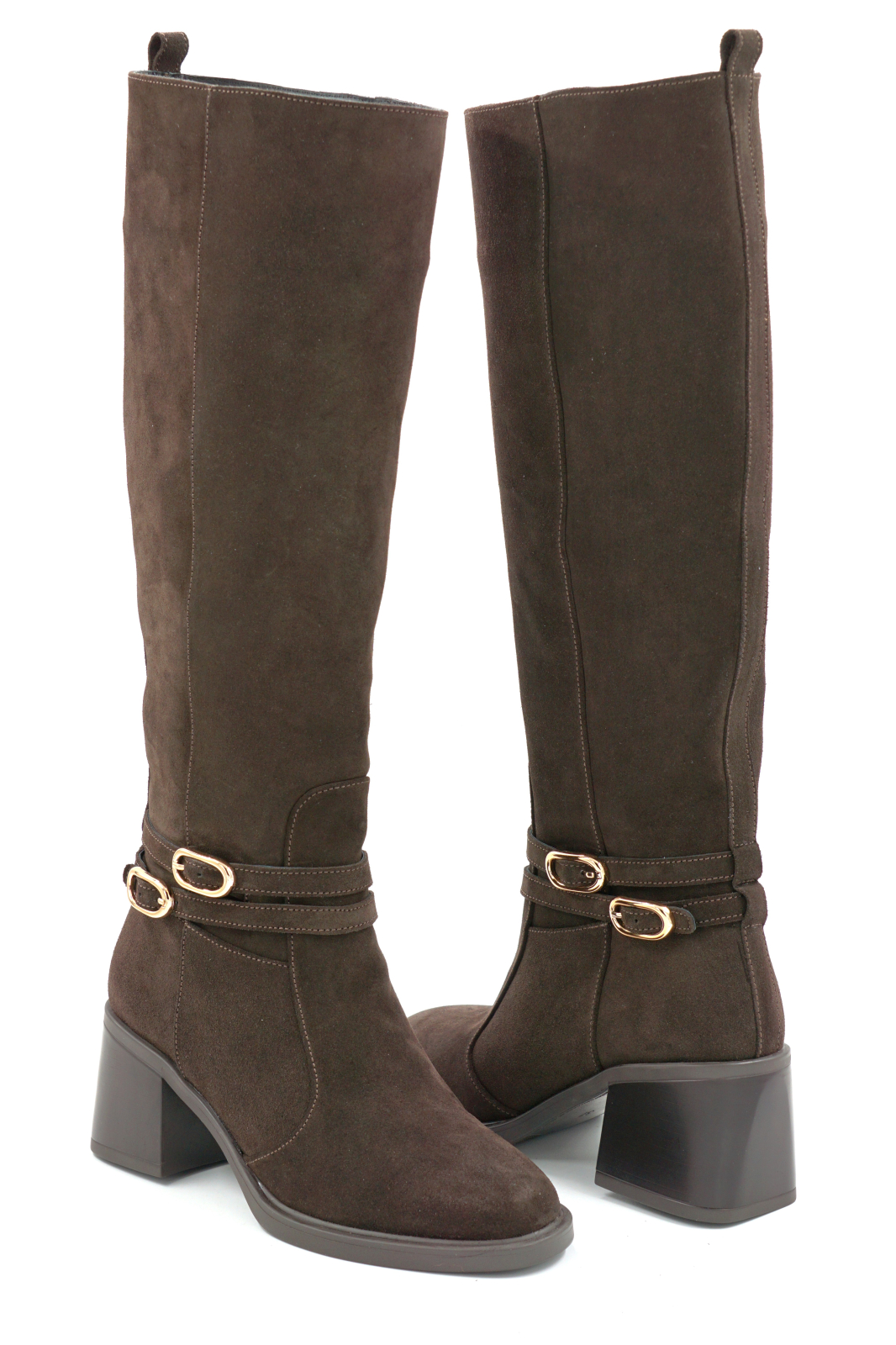 Cizme dama din piele naturala intoarsa maro ciocolata