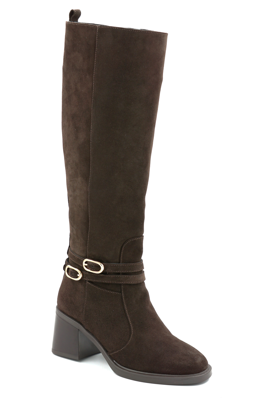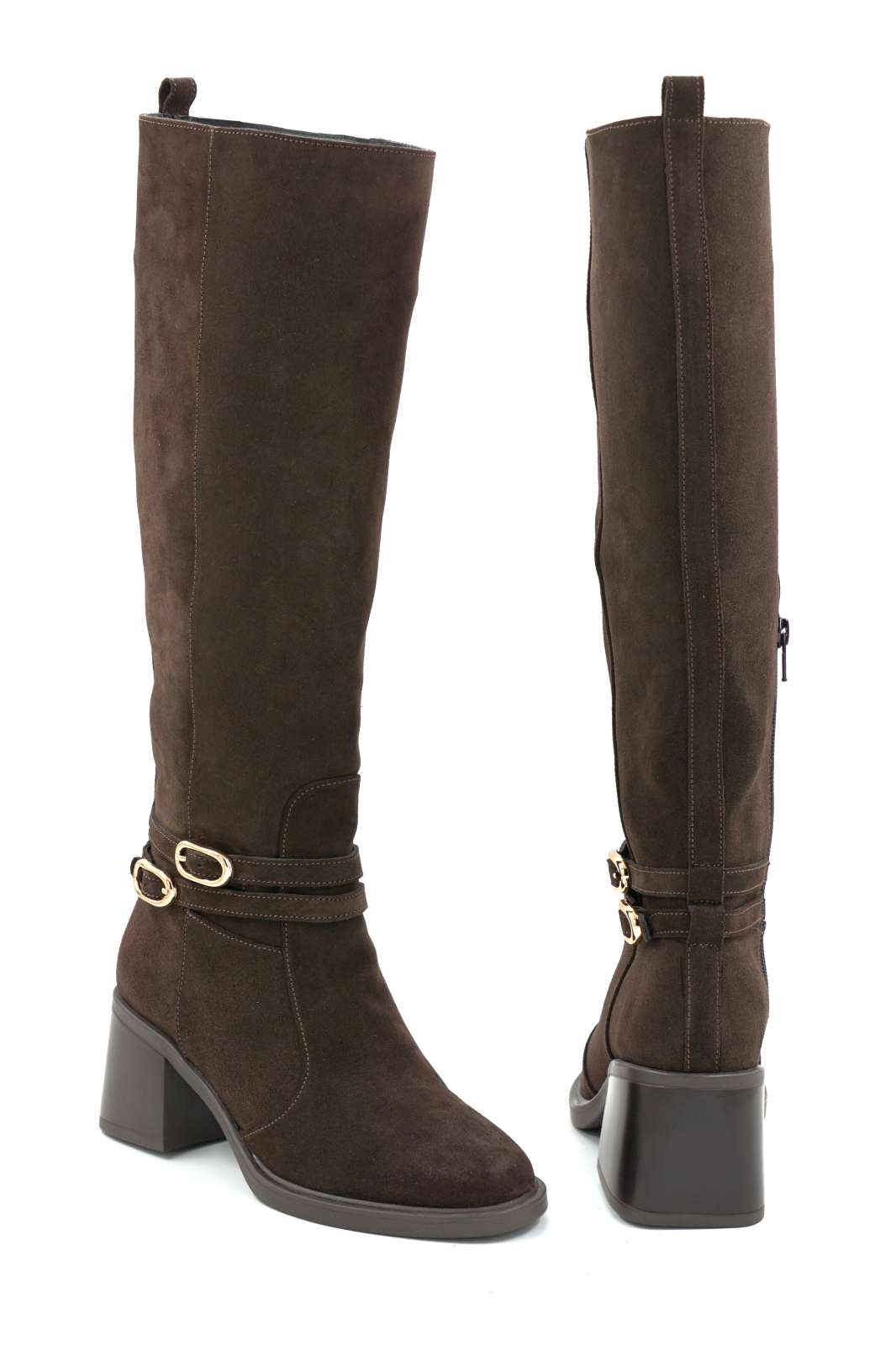 Cizme dama din piele naturala intoarsa maro ciocolata cu varf rotund si toc de 5 cm 70825-3-25