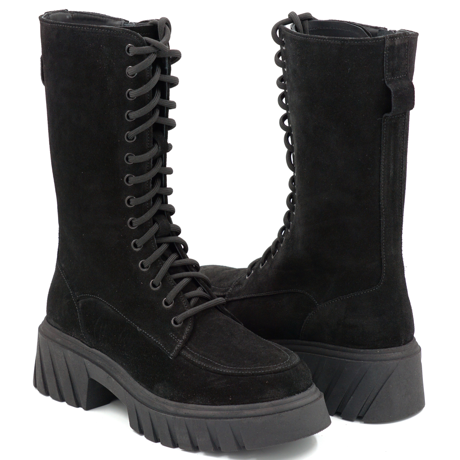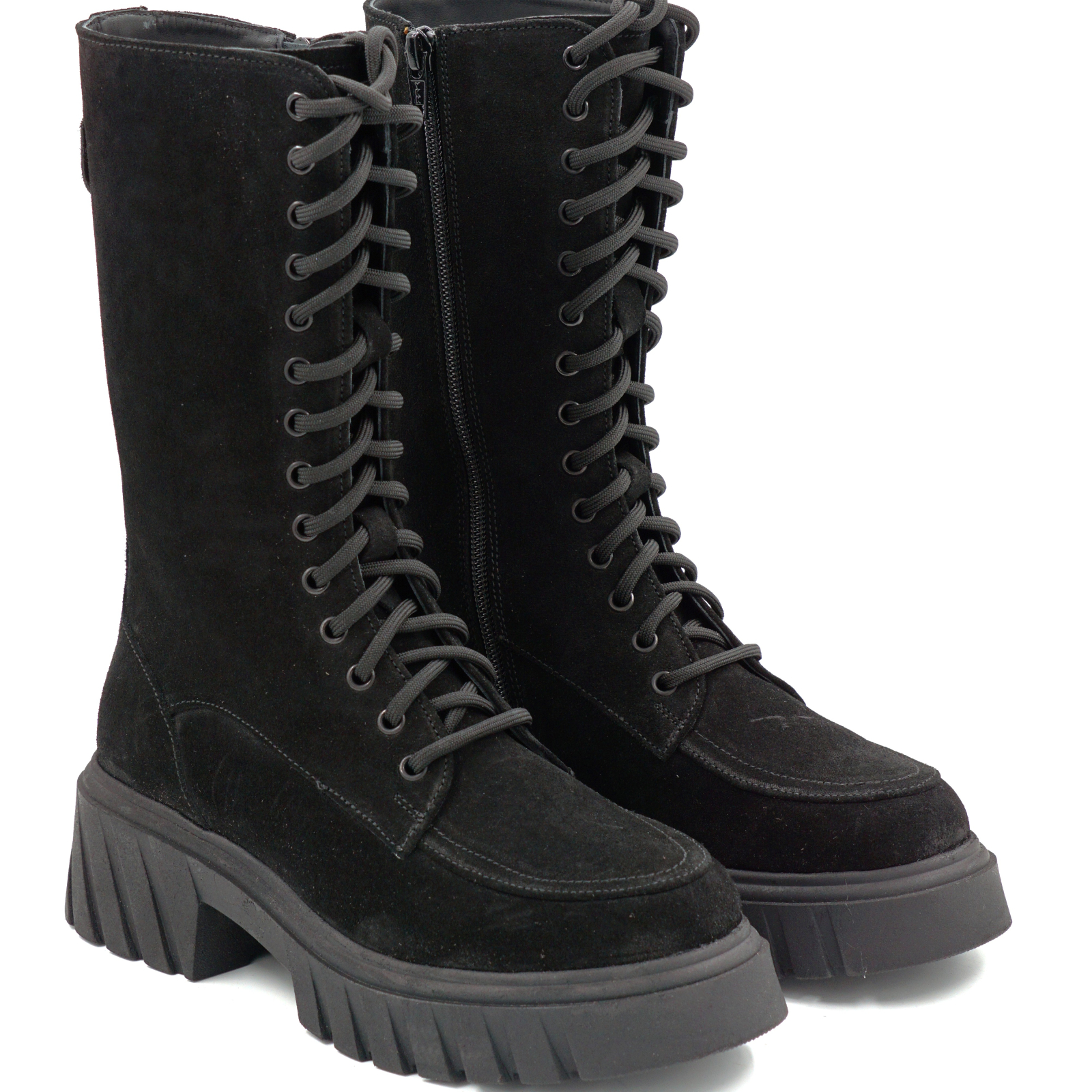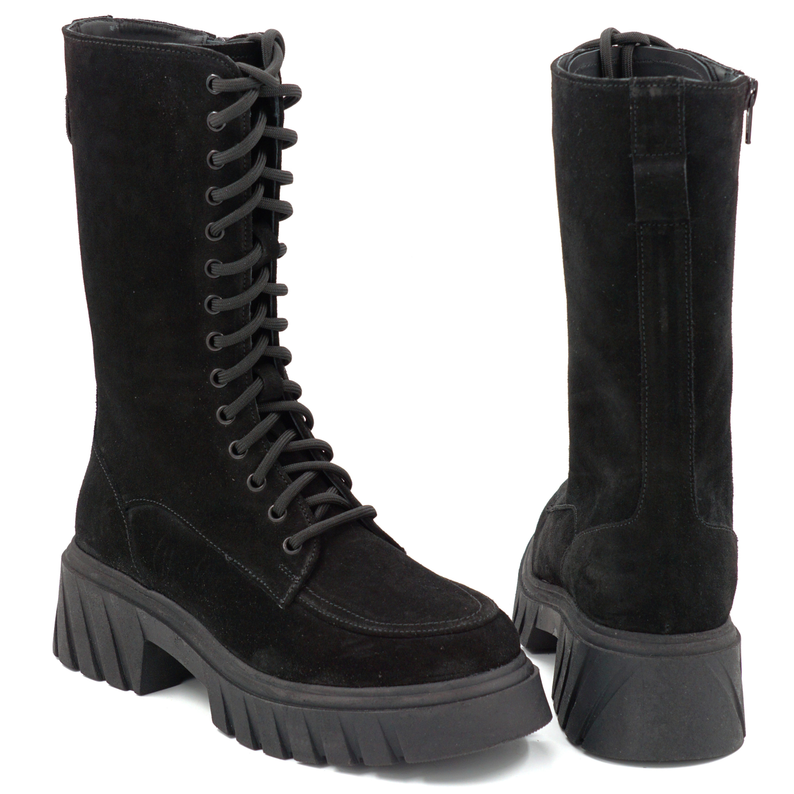 Cizme dama din piele naturala intoarsa neagra cu varf rotund si talpa de 4 cm 76621-25