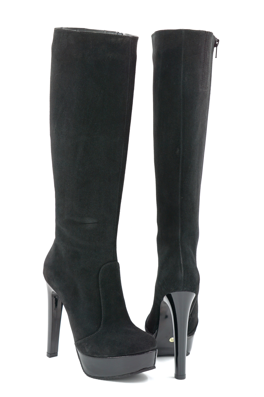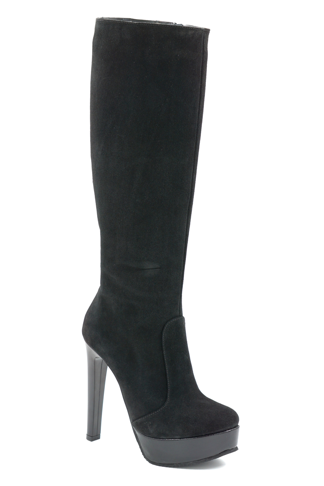 Cizme dama din piele naturala intoarsa neagra cu varf rotund, toc inalt gros de 13 cm si platforma de 3 cm 70123-1-25
