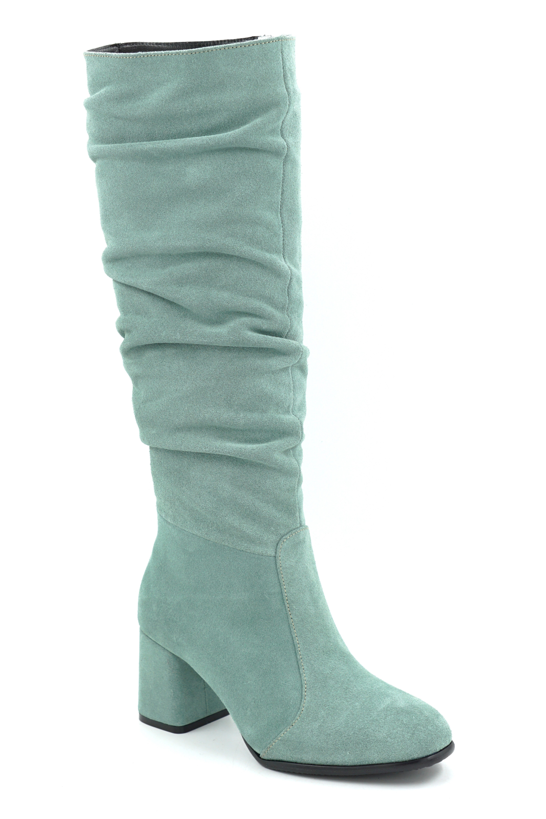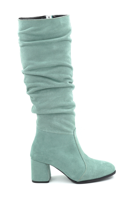 Cizme dama din piele naturala intoarsa verde deschis