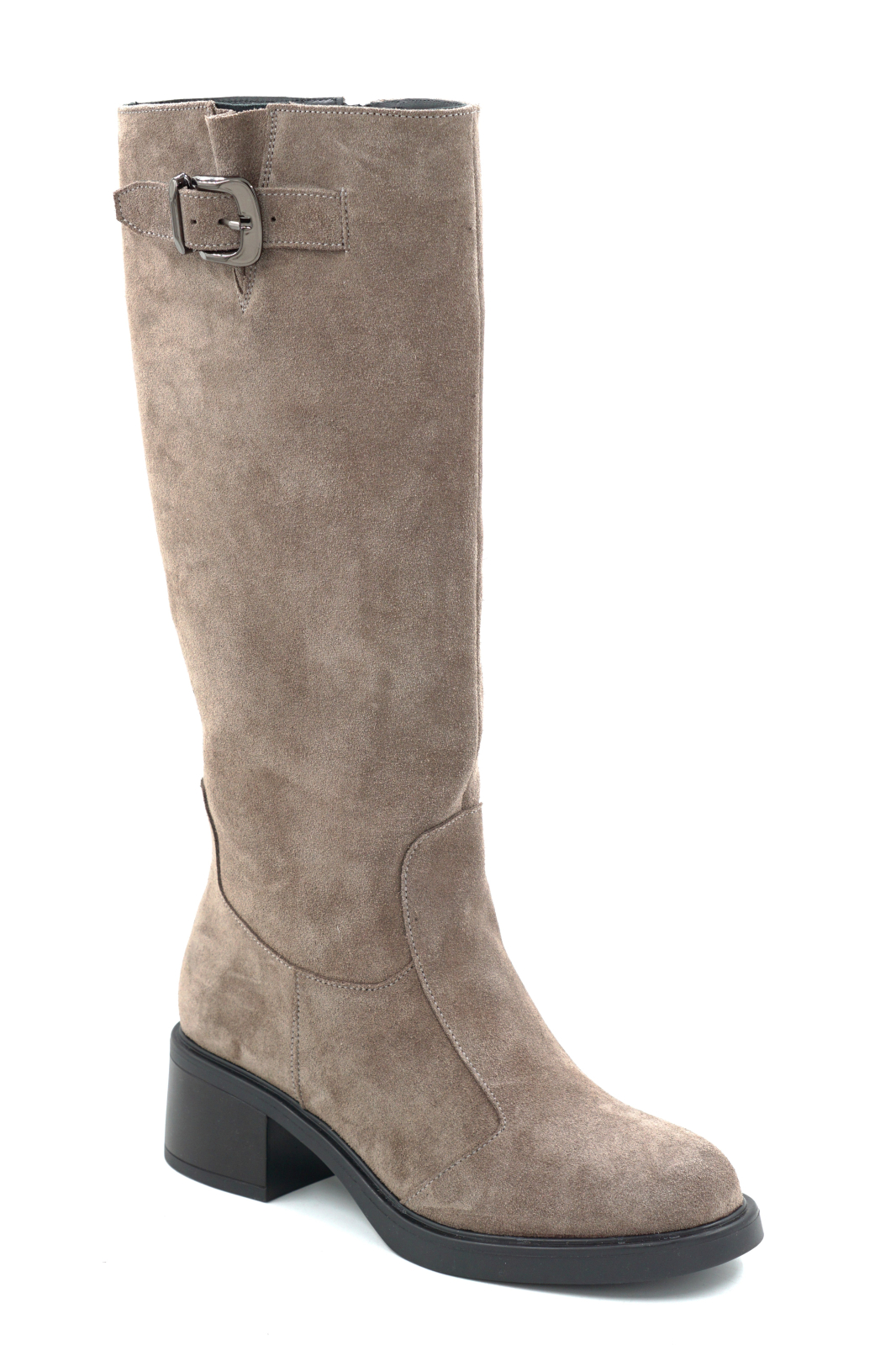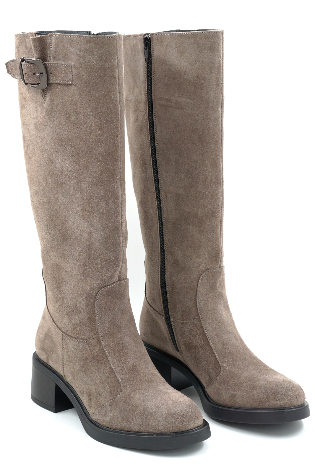Cizme dama din piele naturala intoarsa grej cu varf rotund si toc mic gros de 5 cm 70725-1-25