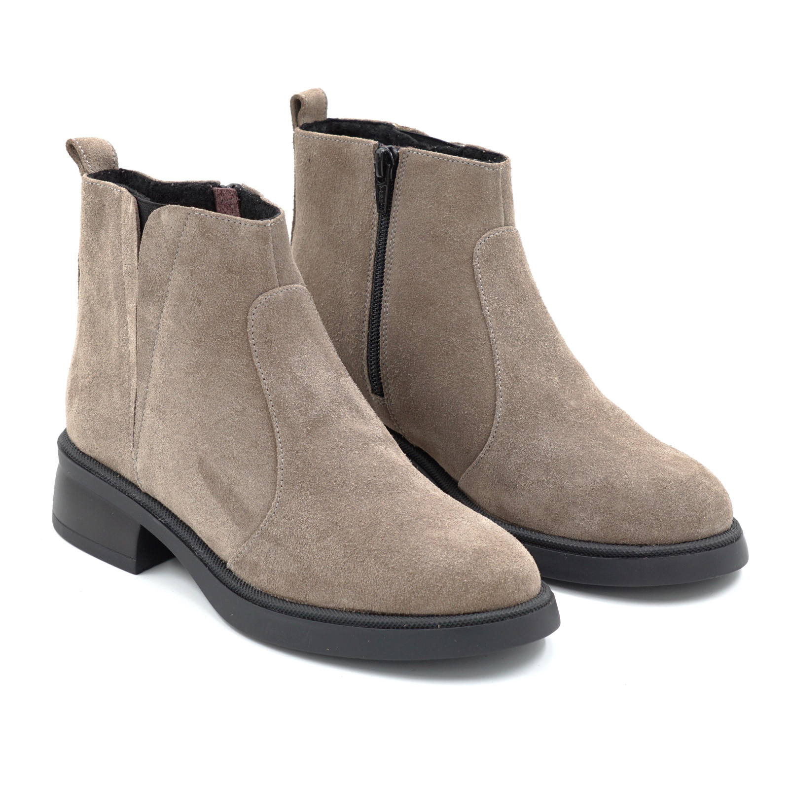 Ghete dama din piele naturala intoarsa grej cu varf rotund si talpa de 3 cm 73017-2-25