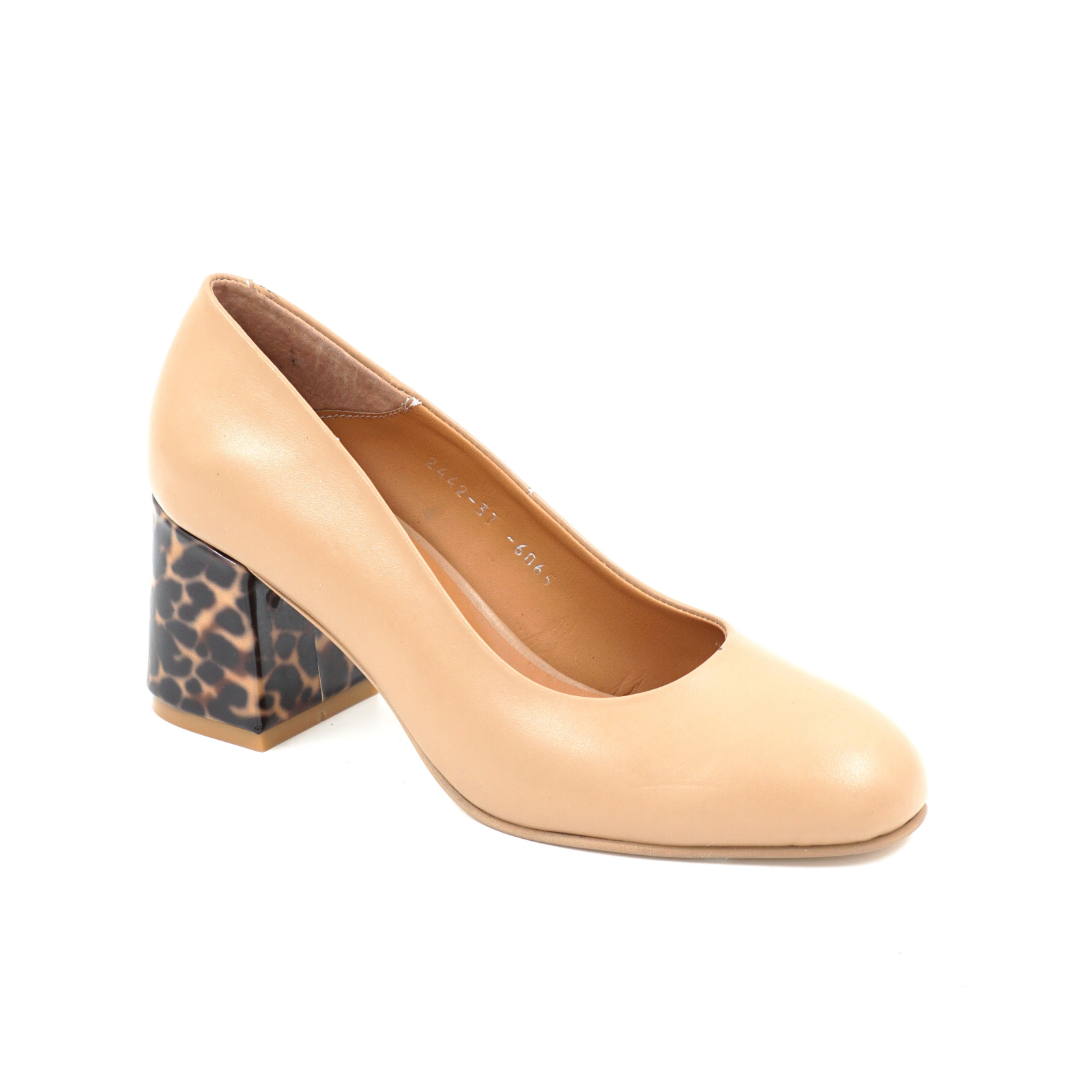 Pantofi dama din piele naturala bej inchis si cu imprimeu lacuit animal print