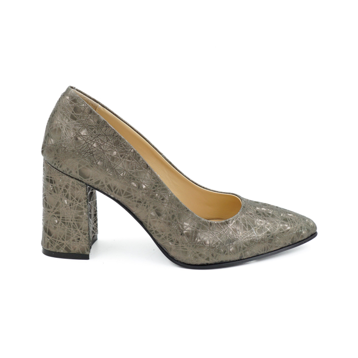 Pantofi dama din piele naturala cu imprimeu 3D olive