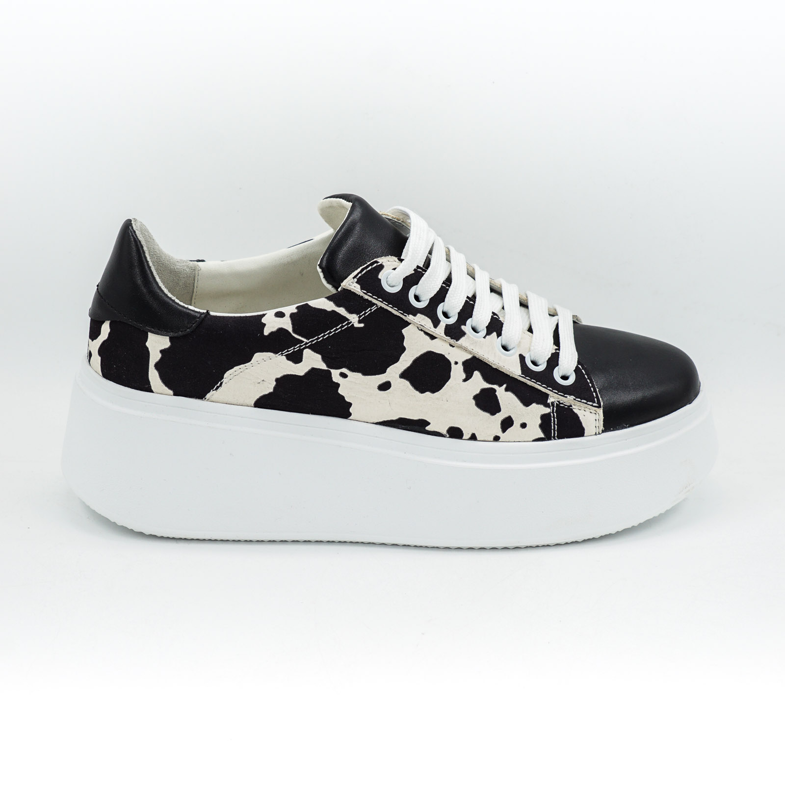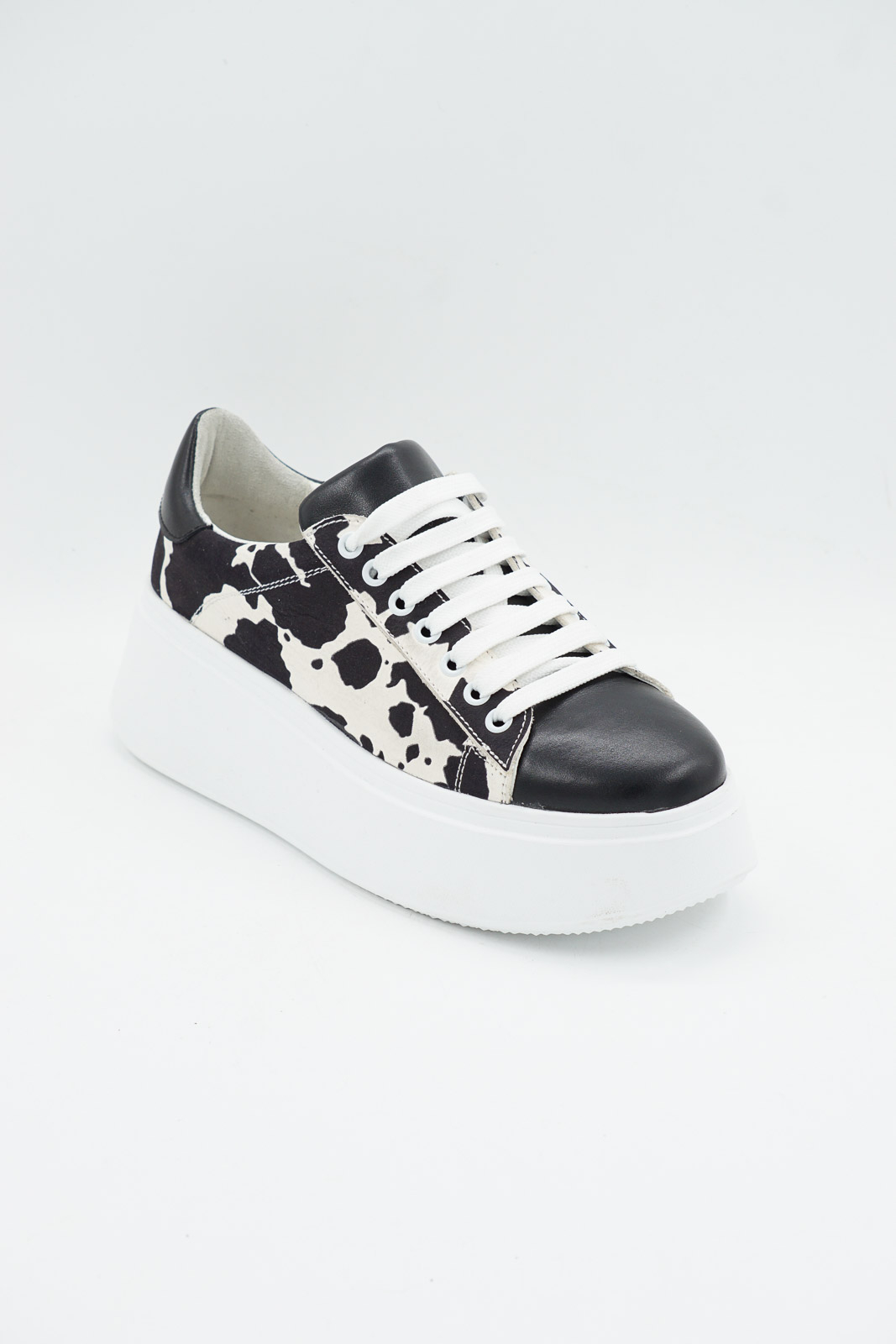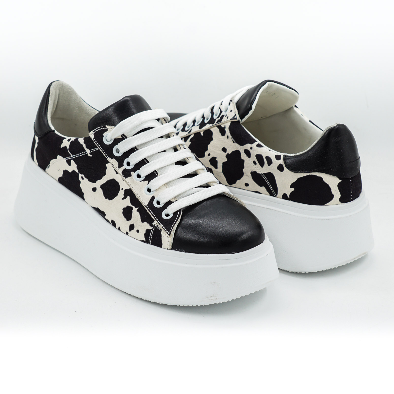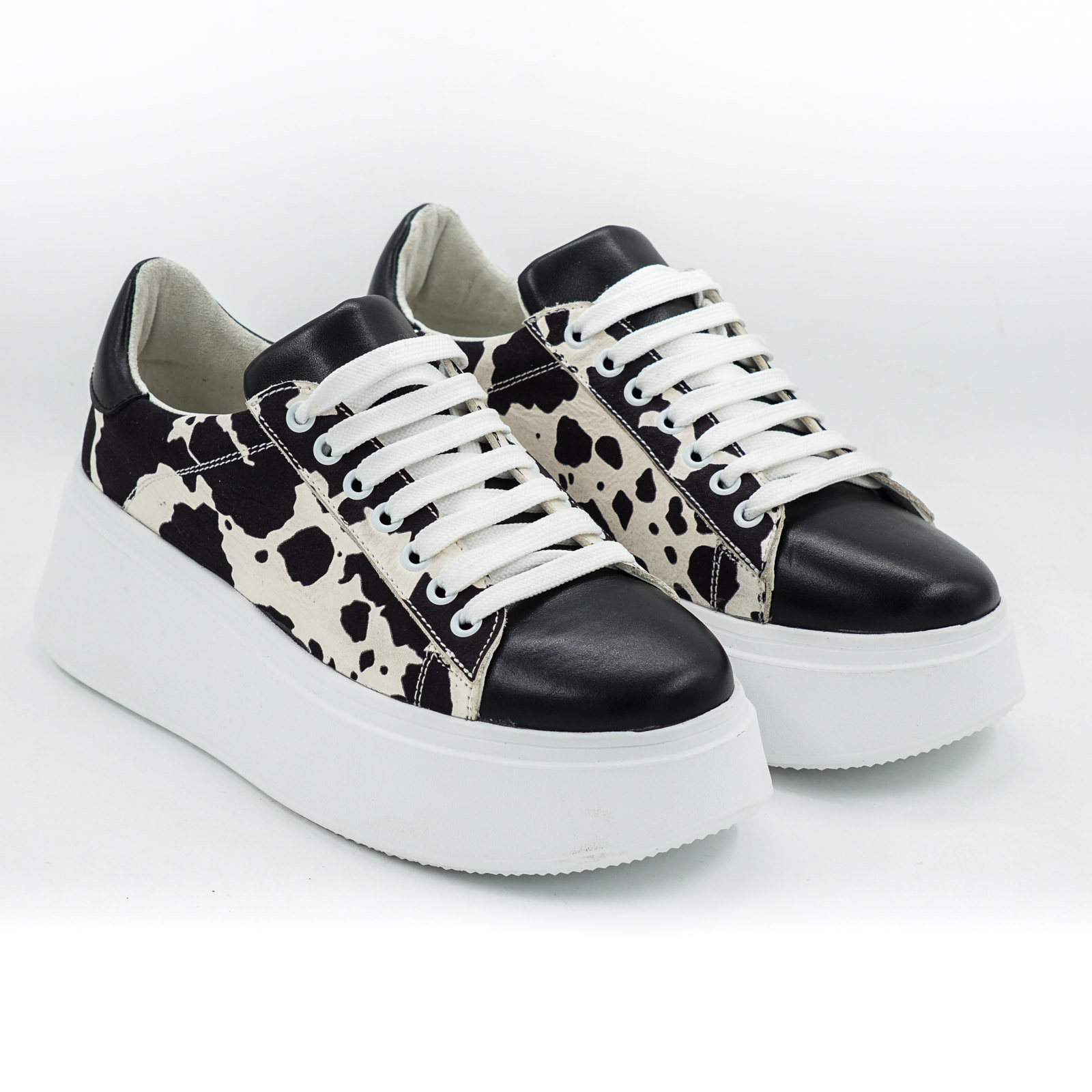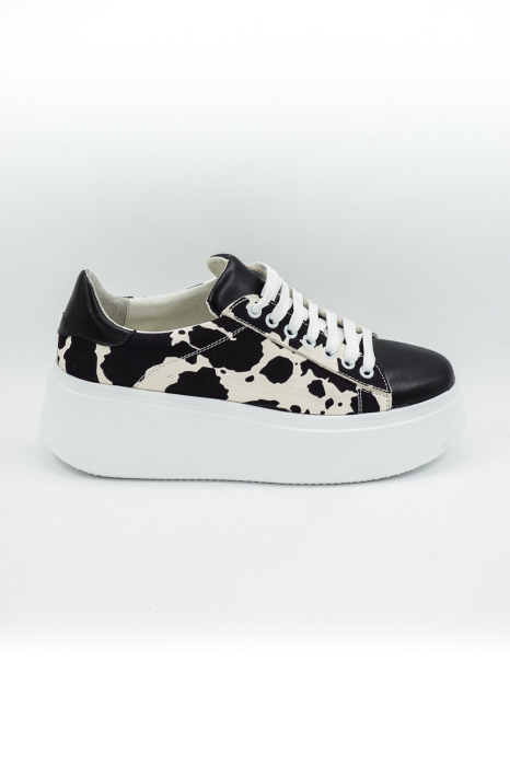 Pantofi dama tip adidas din piele naturala alba cu pete negre