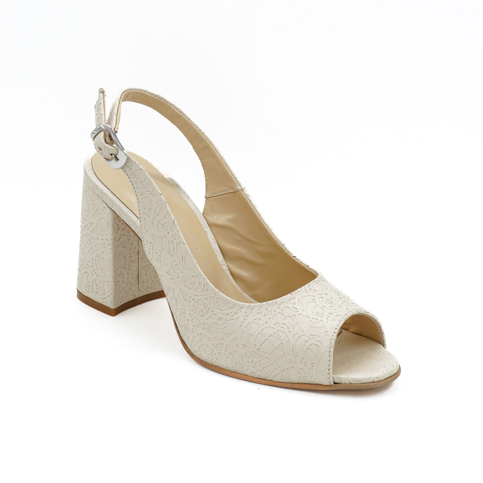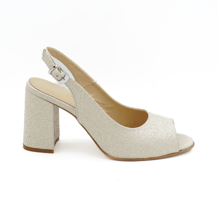 Sandale dama din piele naturala nude bej cu imprimeu brodat