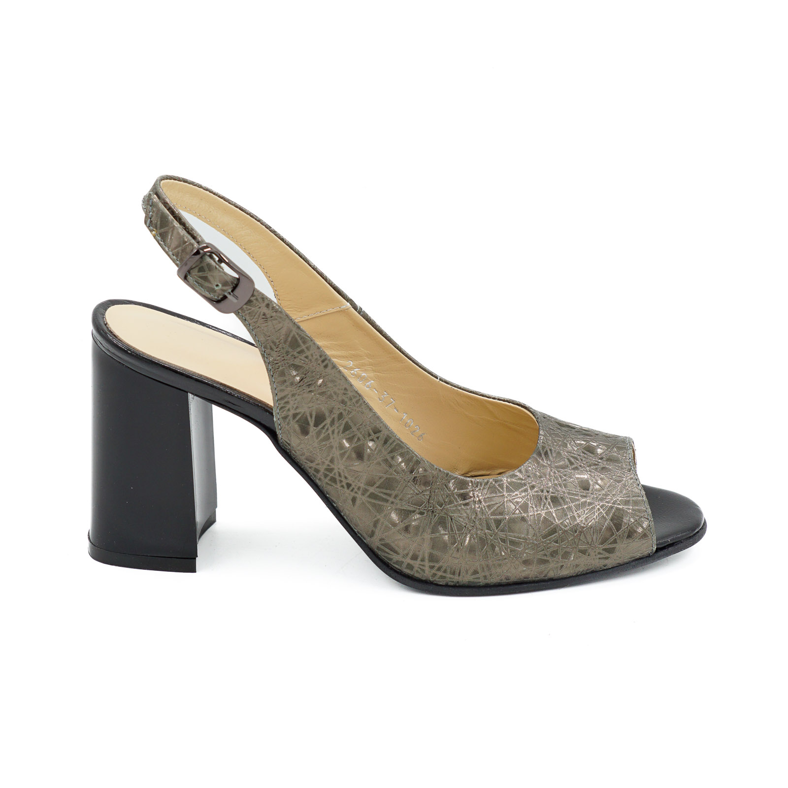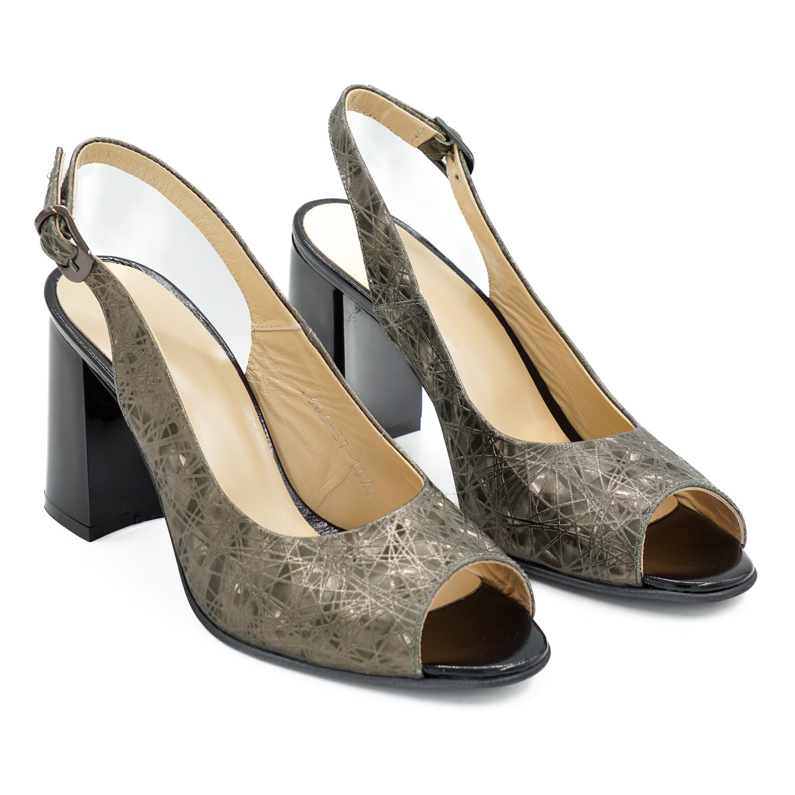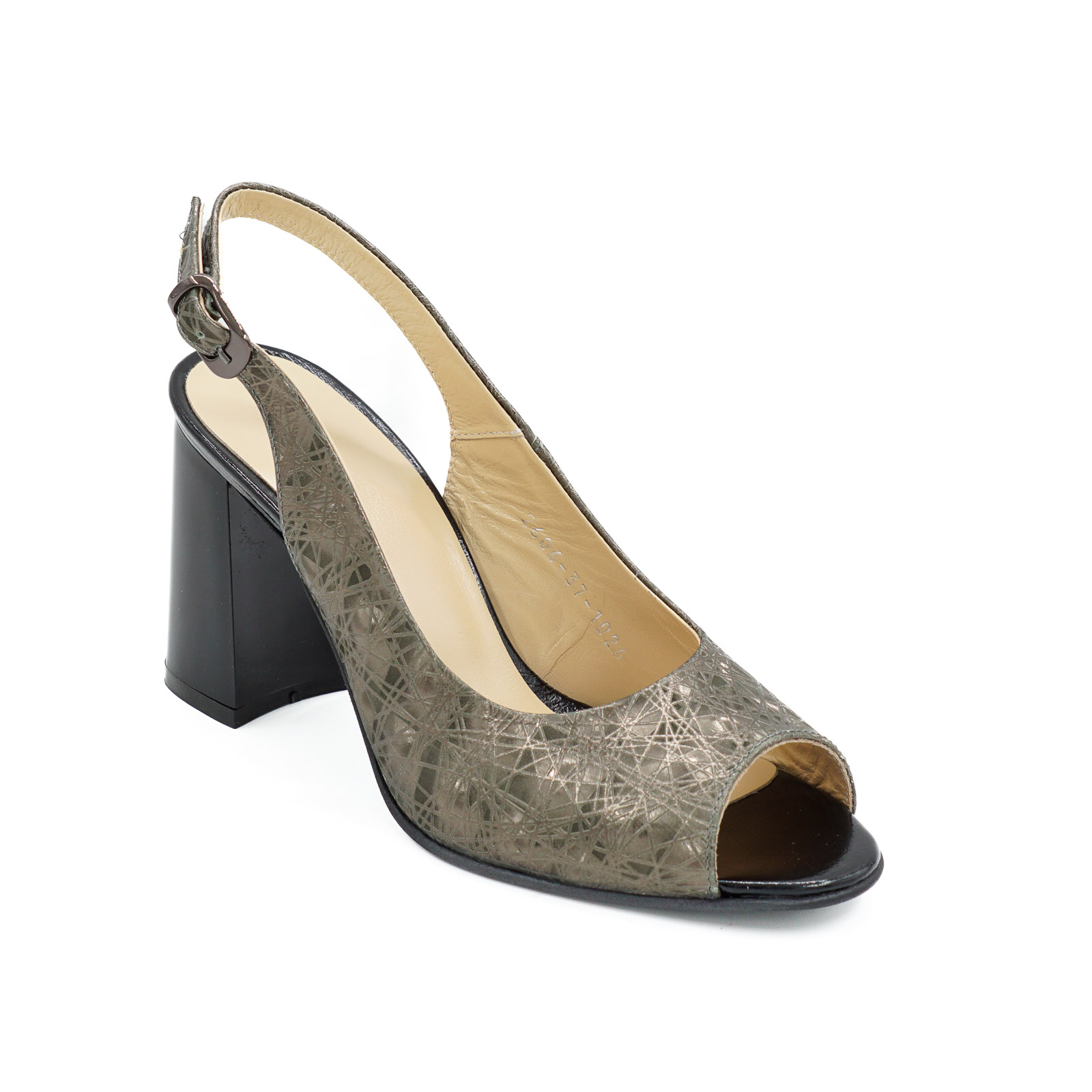 Sandale dama din piele naturala cu imprimeu 3D olive