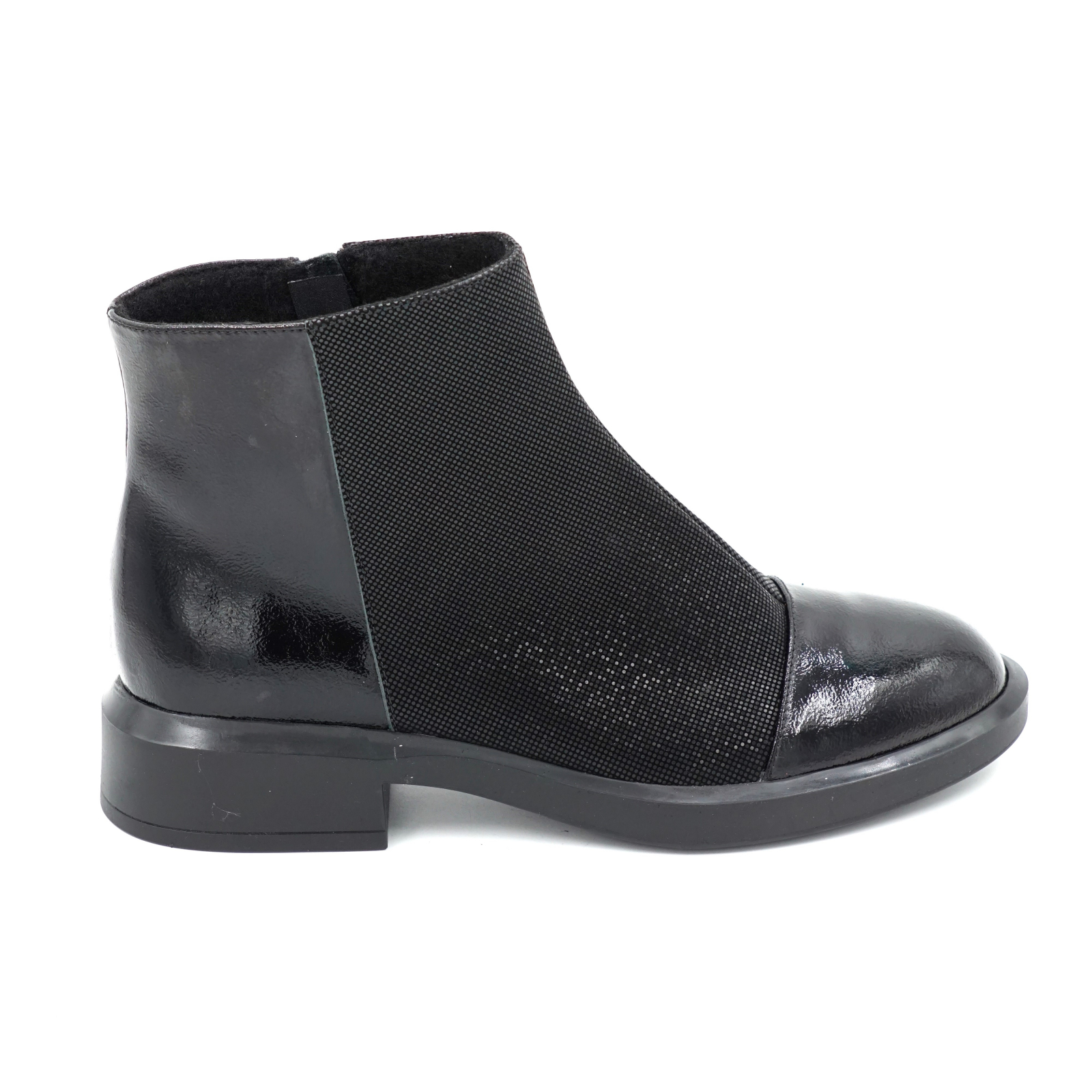 Ghete dama casual din piele naturala neagra si lac negru