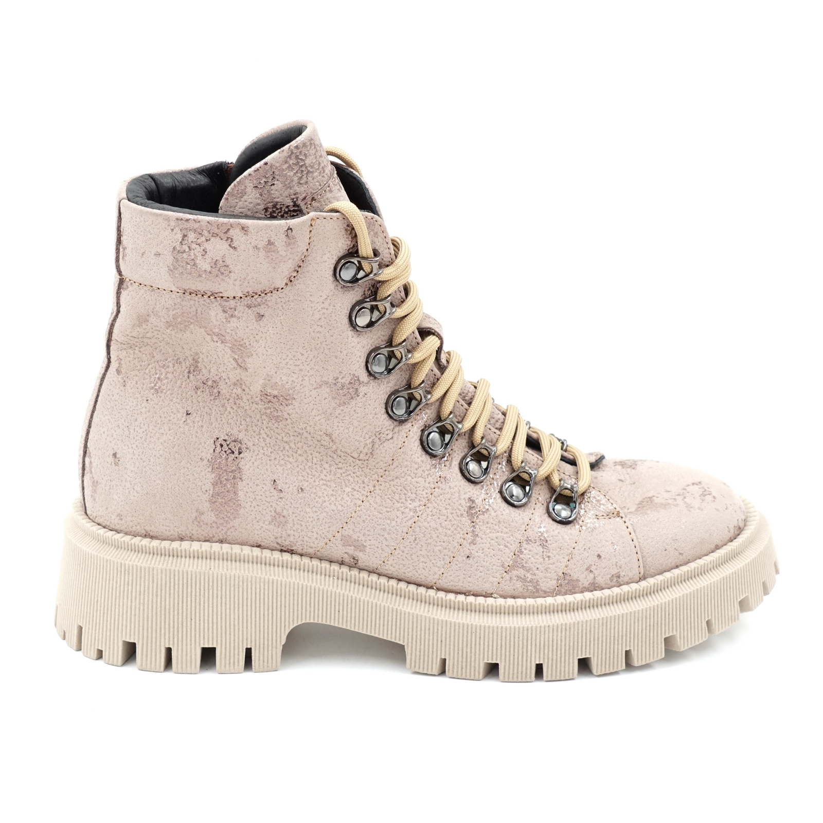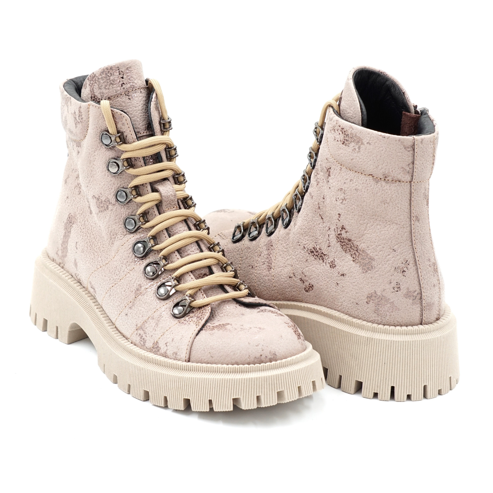Ghete dama casual din piele naturala roze inchis cu imprimeu cu varf rotund si talpa 3 cm 75021-23