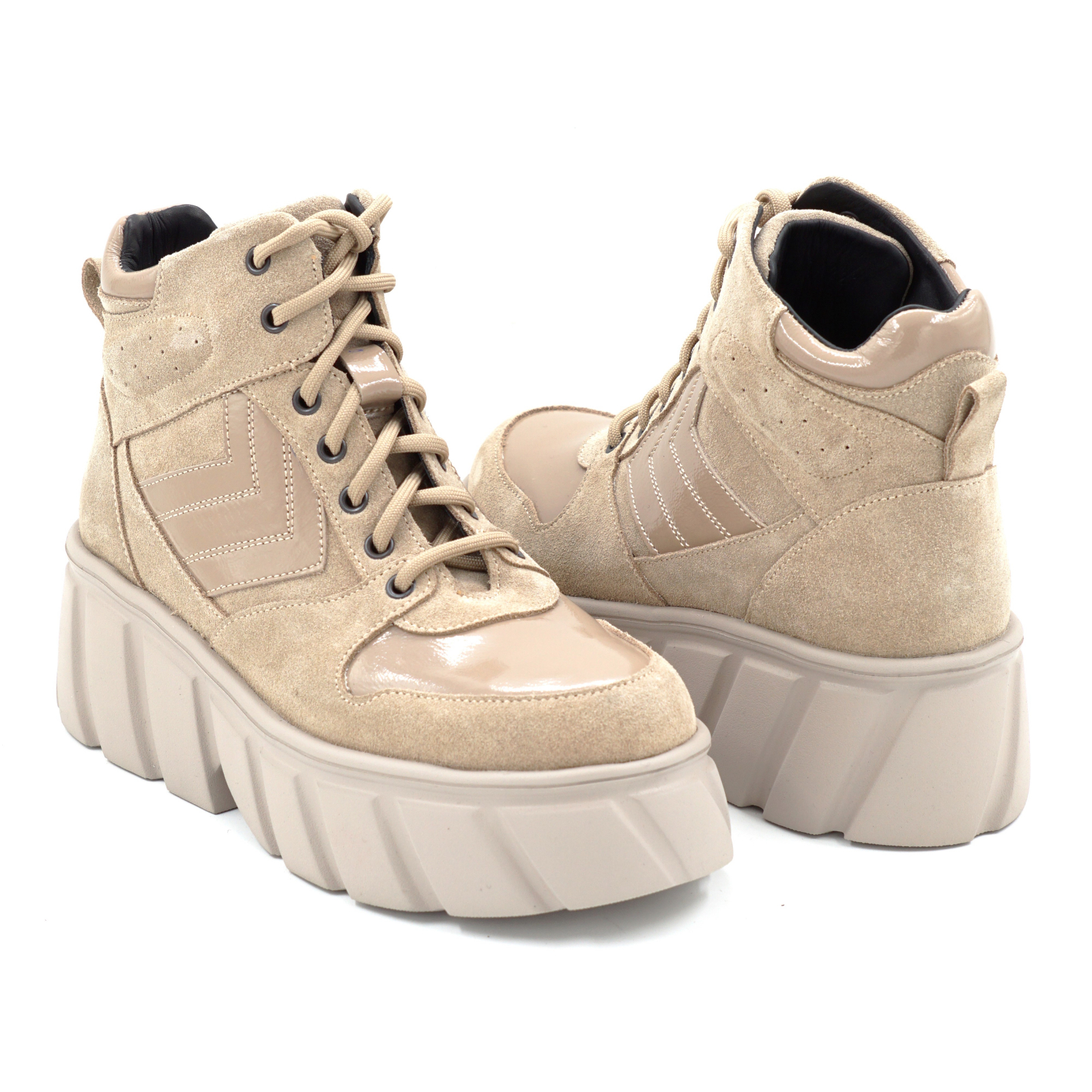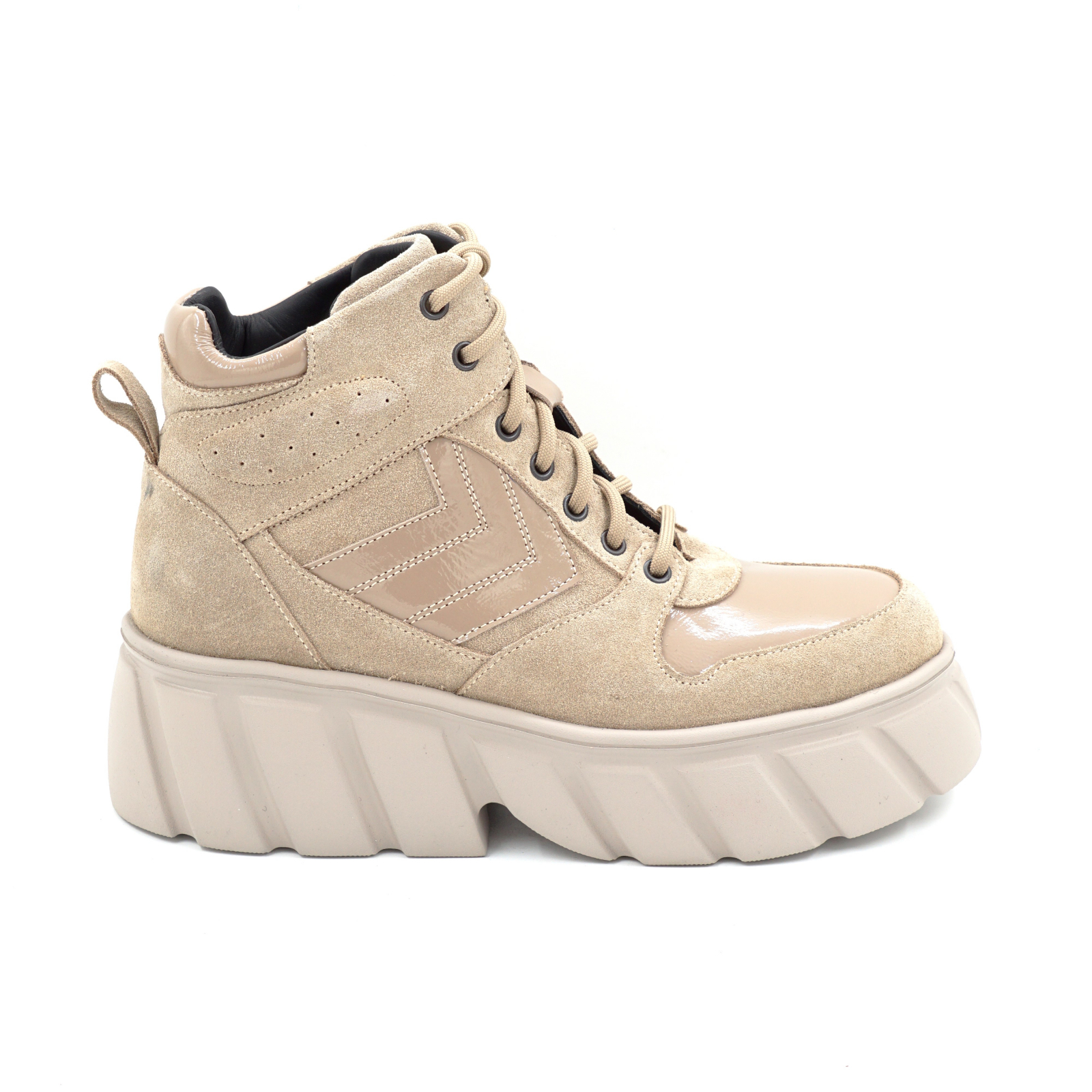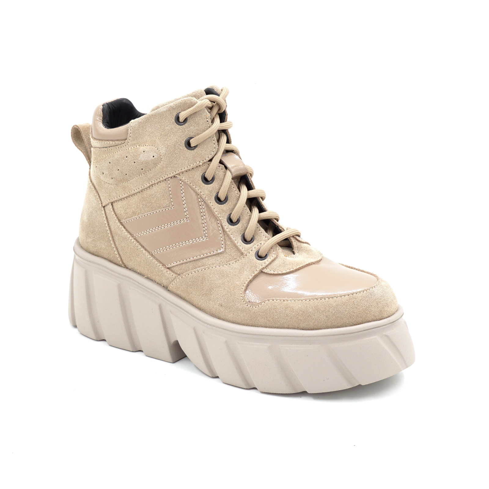 Ghete dama din piele naturala intoarsa bej cappucino cu varf rotund si talpa de 5 cm 74221-25
