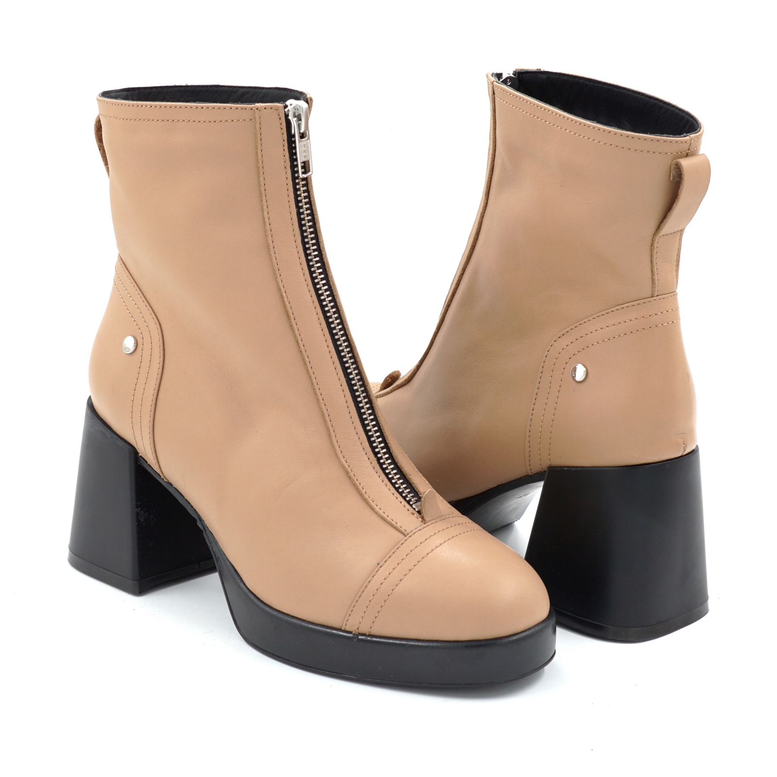Ghete dama din piele naturala maro deschis cu varf rotund, platforma 2 cm si toc mediu gros de 7 cm 71624-25