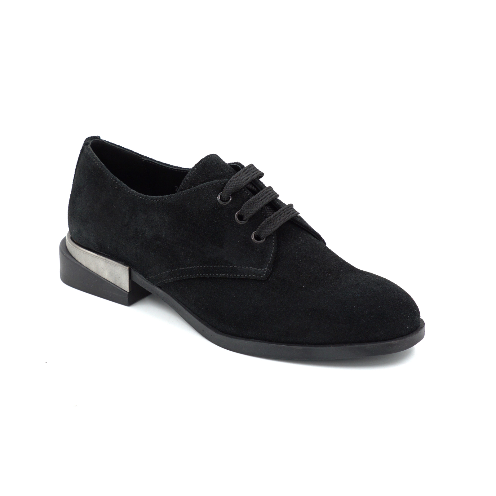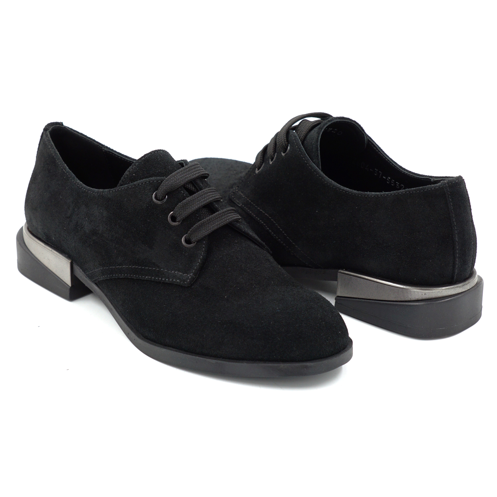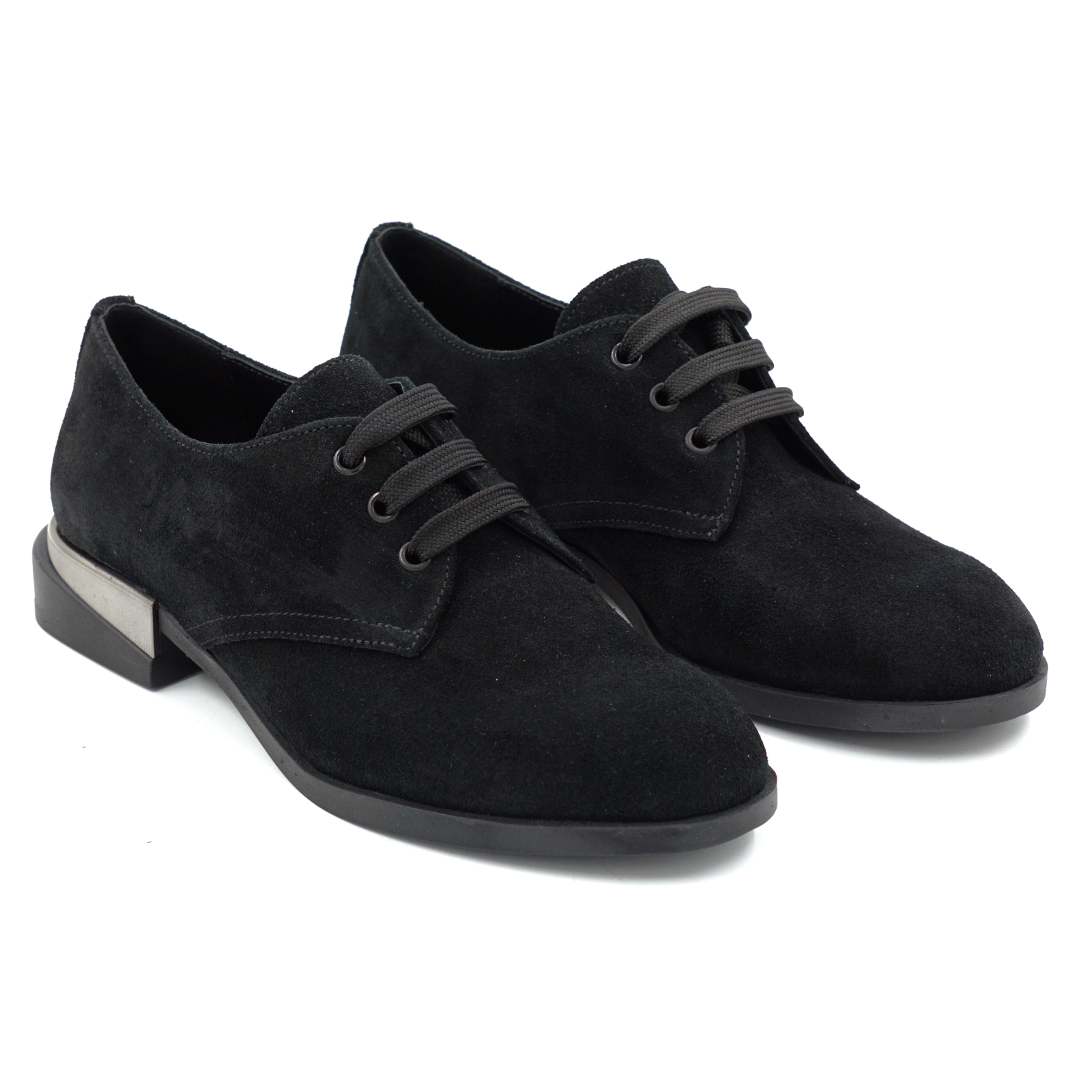Pantofi dama tip Oxford din piele naturala intoarsa neagra