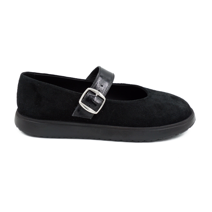Pantofi dama tip barefoot din piele naturala intoarsa neagra si piele naturala lacuita cu spatiu generos pentru degete
