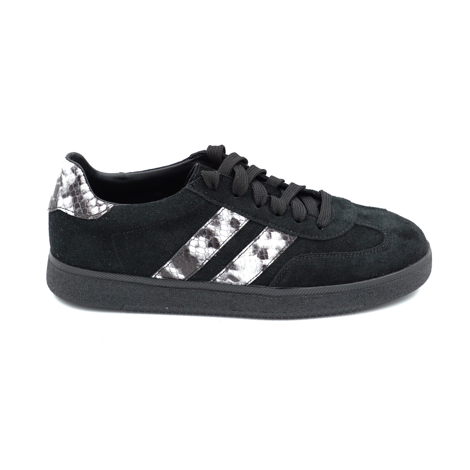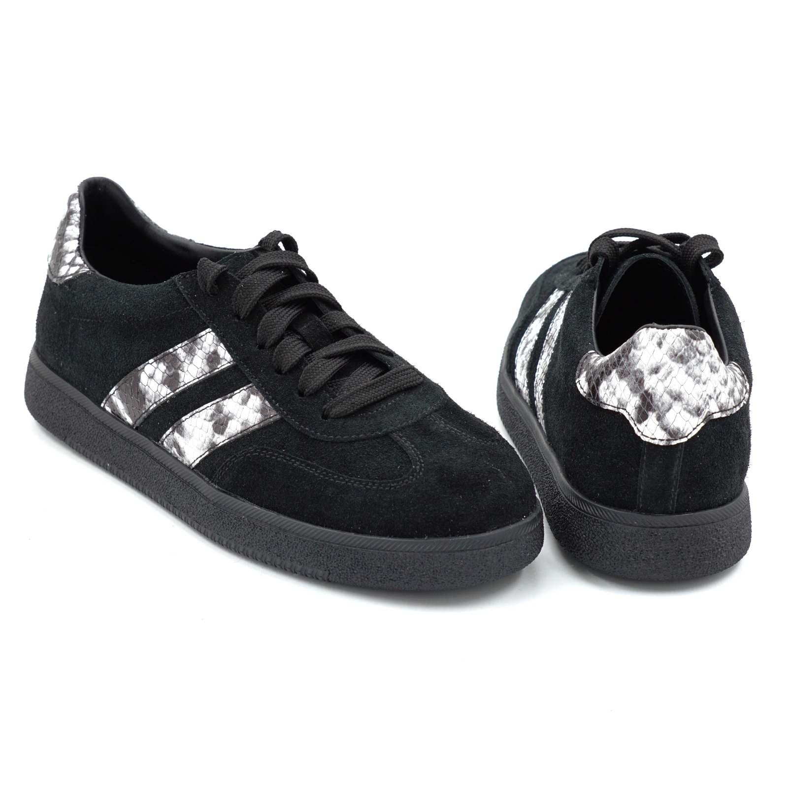 Pantofi dama tip adidas din piele naturala intoarsa neagra si cu imprimeu sarpe