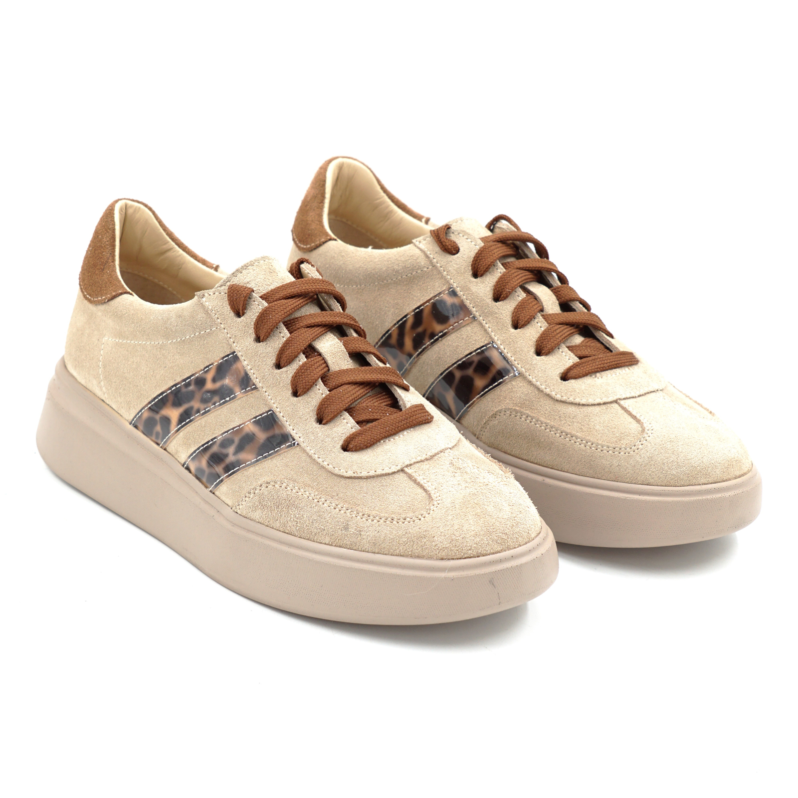 Pantofi dama tip adidas din piele naturala intoarsa bej cappucino si cu imprimeu leopard