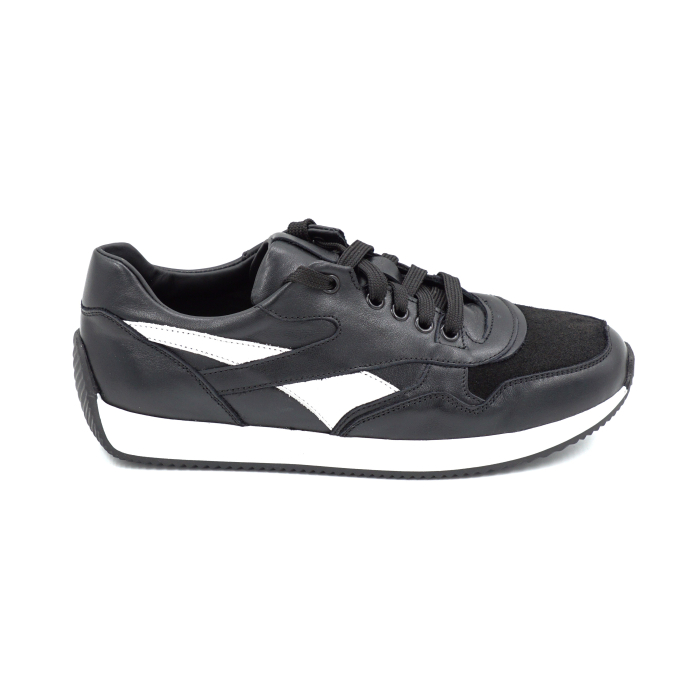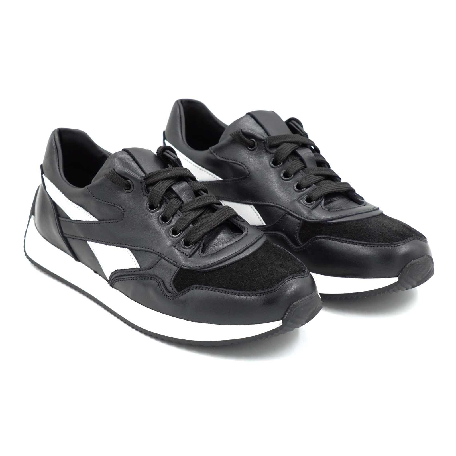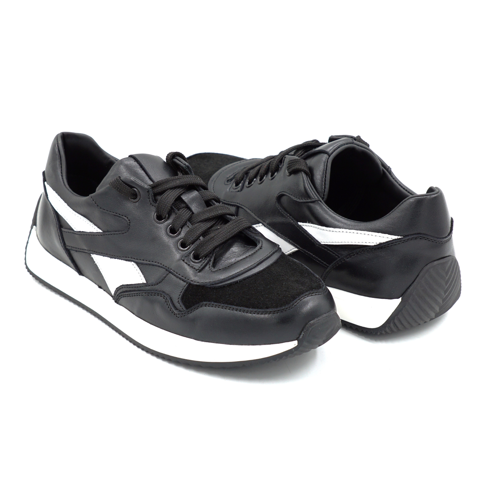 Pantofi dama tip adidas din piele naturala neagra si alba cu varf rotund si talpa de 3 cm 55925-25