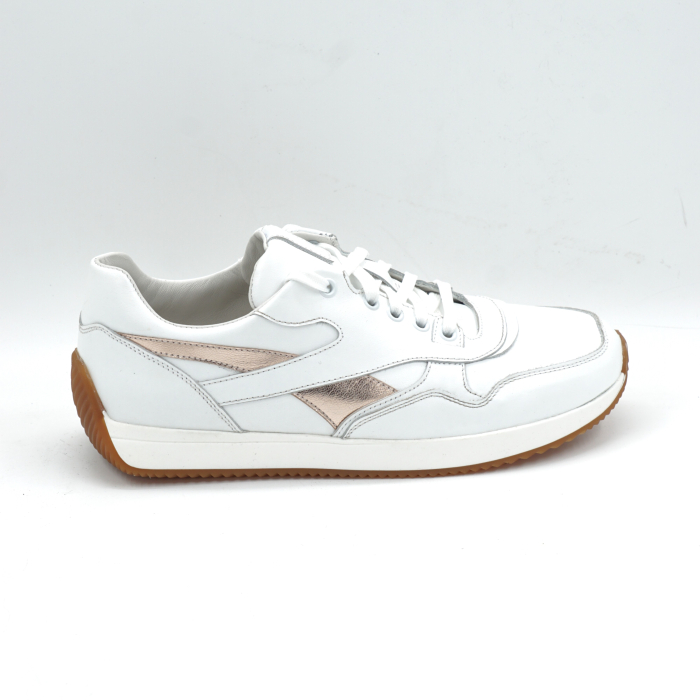 Pantofi dama tip adidas din piele naturala alba si aurie cu varf rotund si talpa de 3 cm 55925-2-25