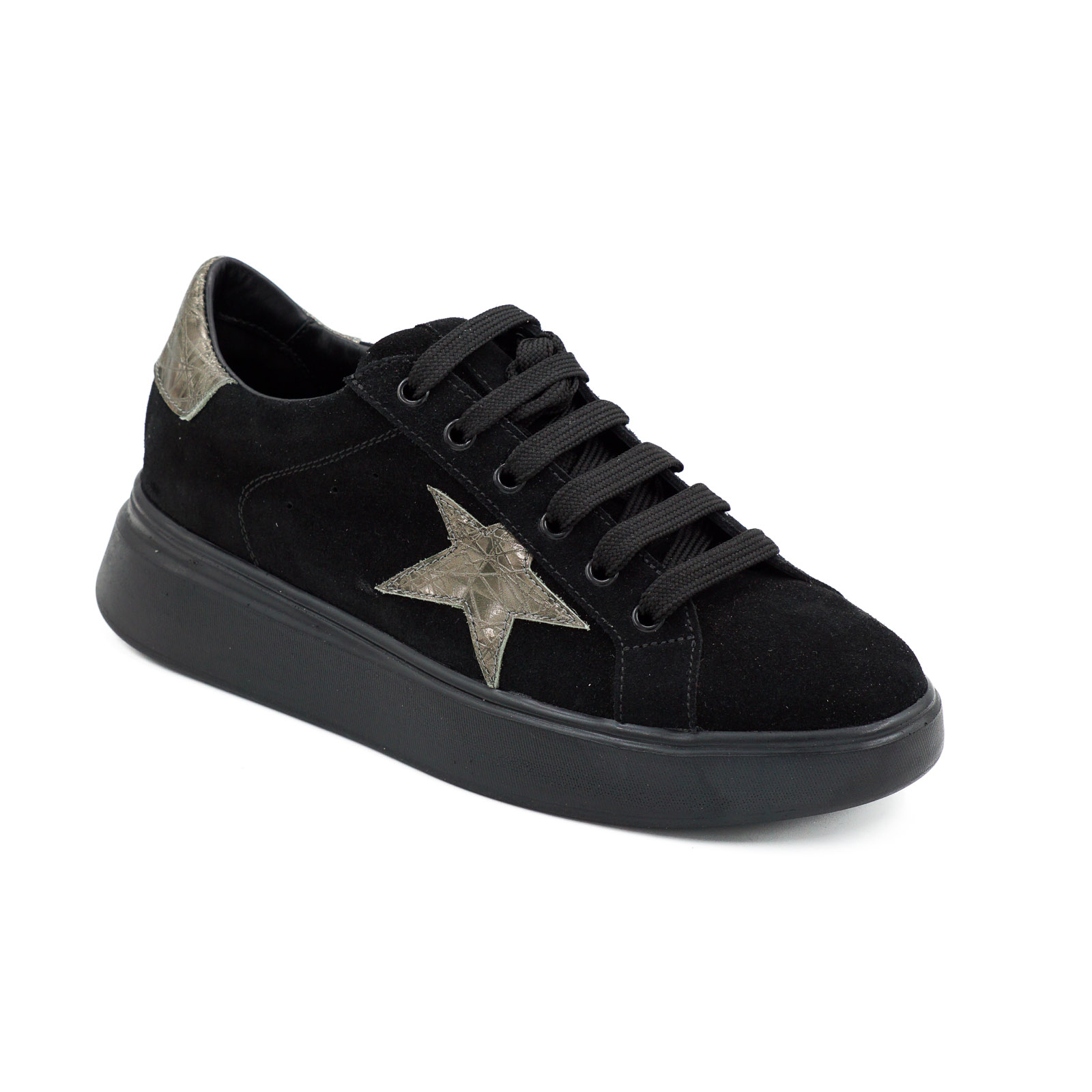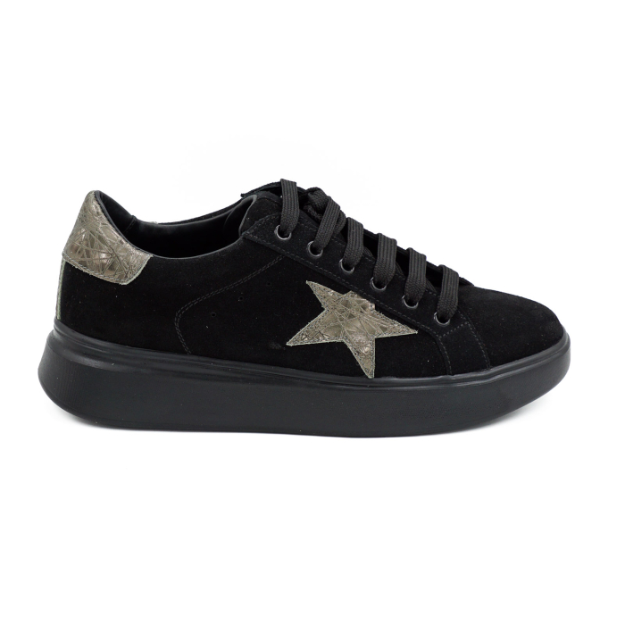 Pantofi dama tip adidas din piele naturala intoarsa neagra si 3D olive