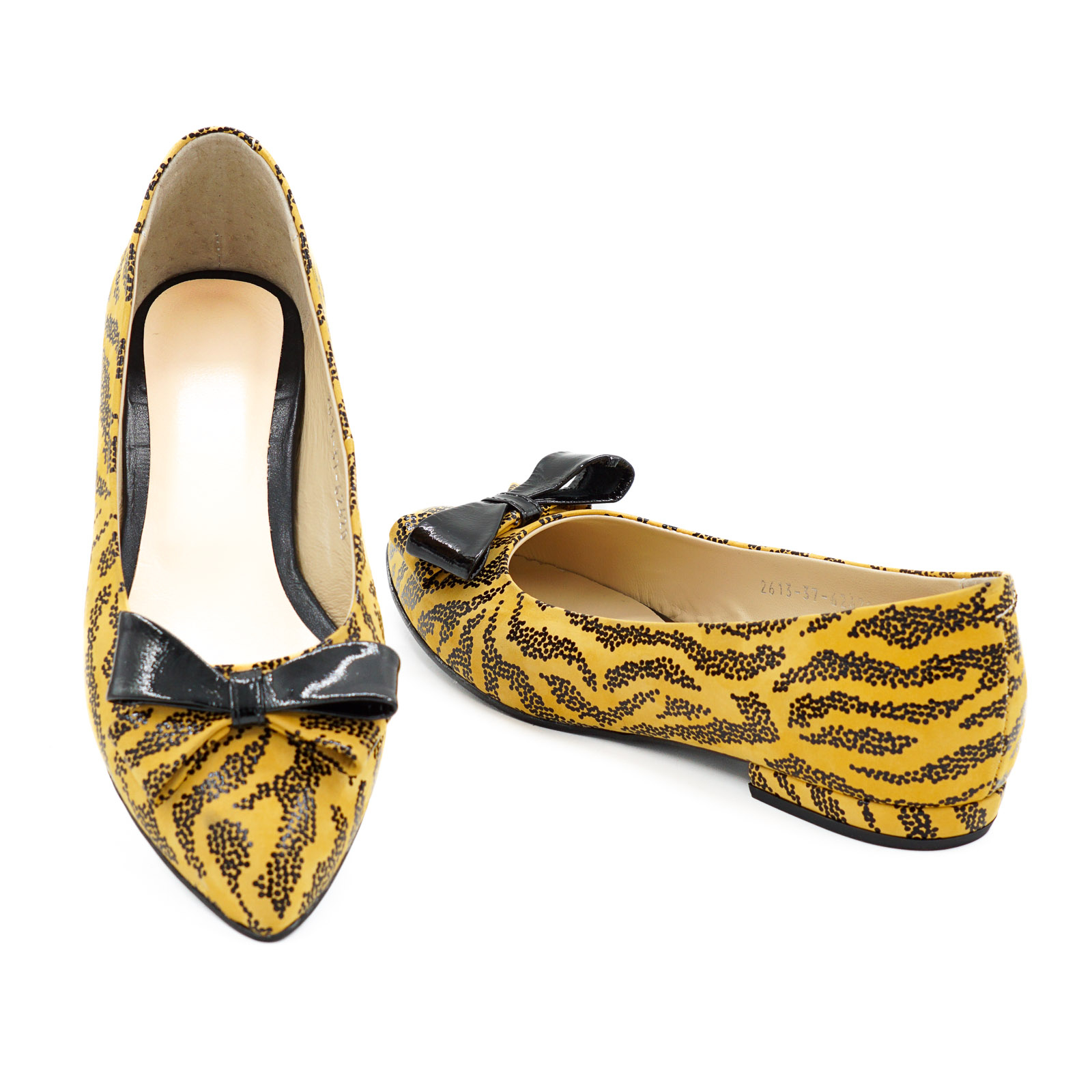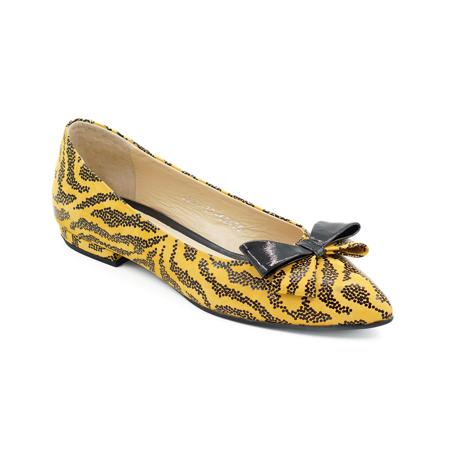 Pantofi dama din piele naturala galben mustar cu imprimeu negru