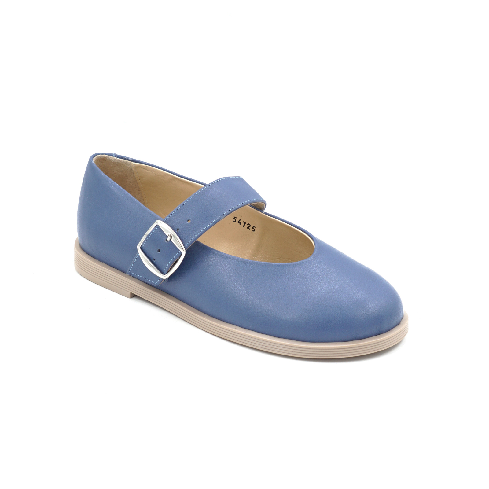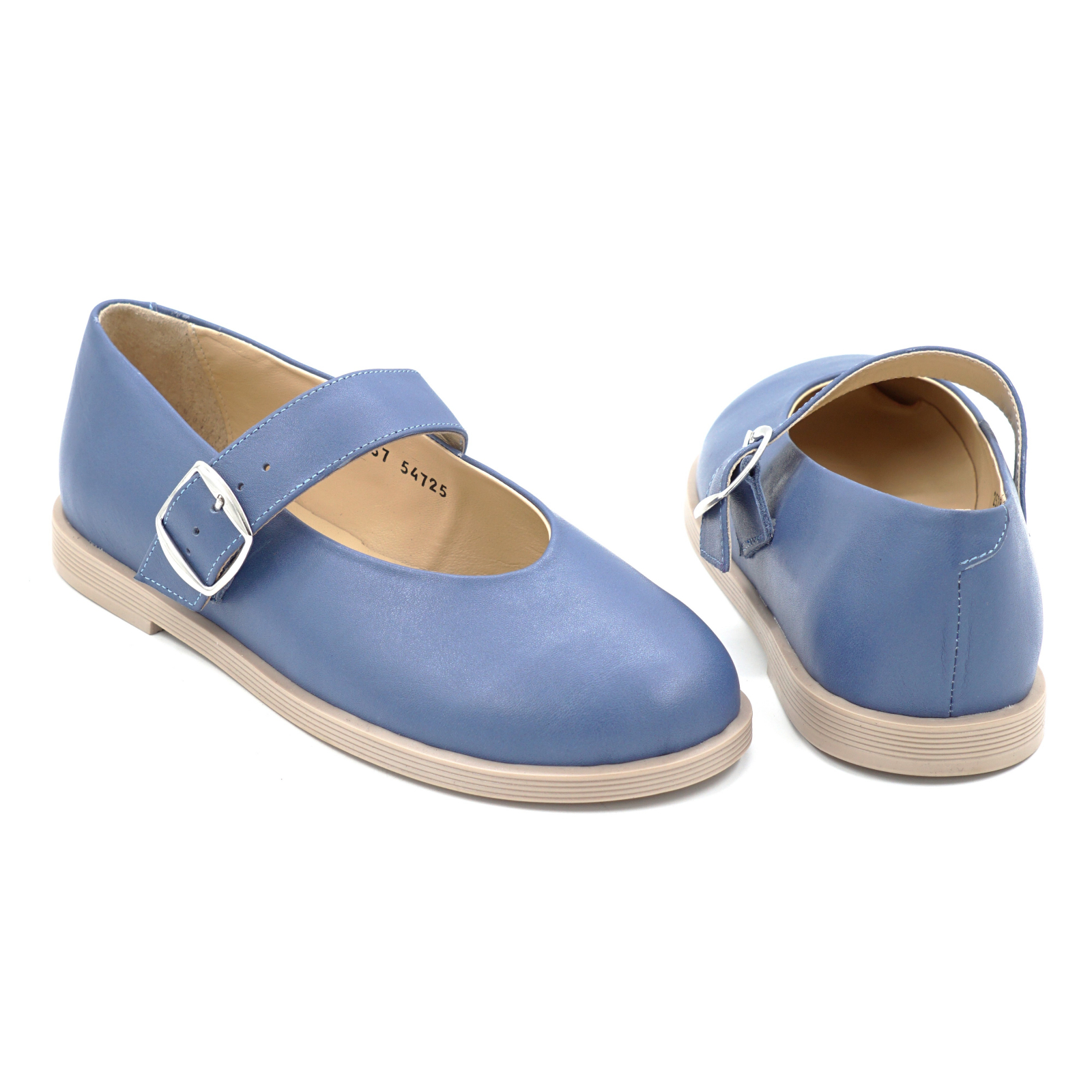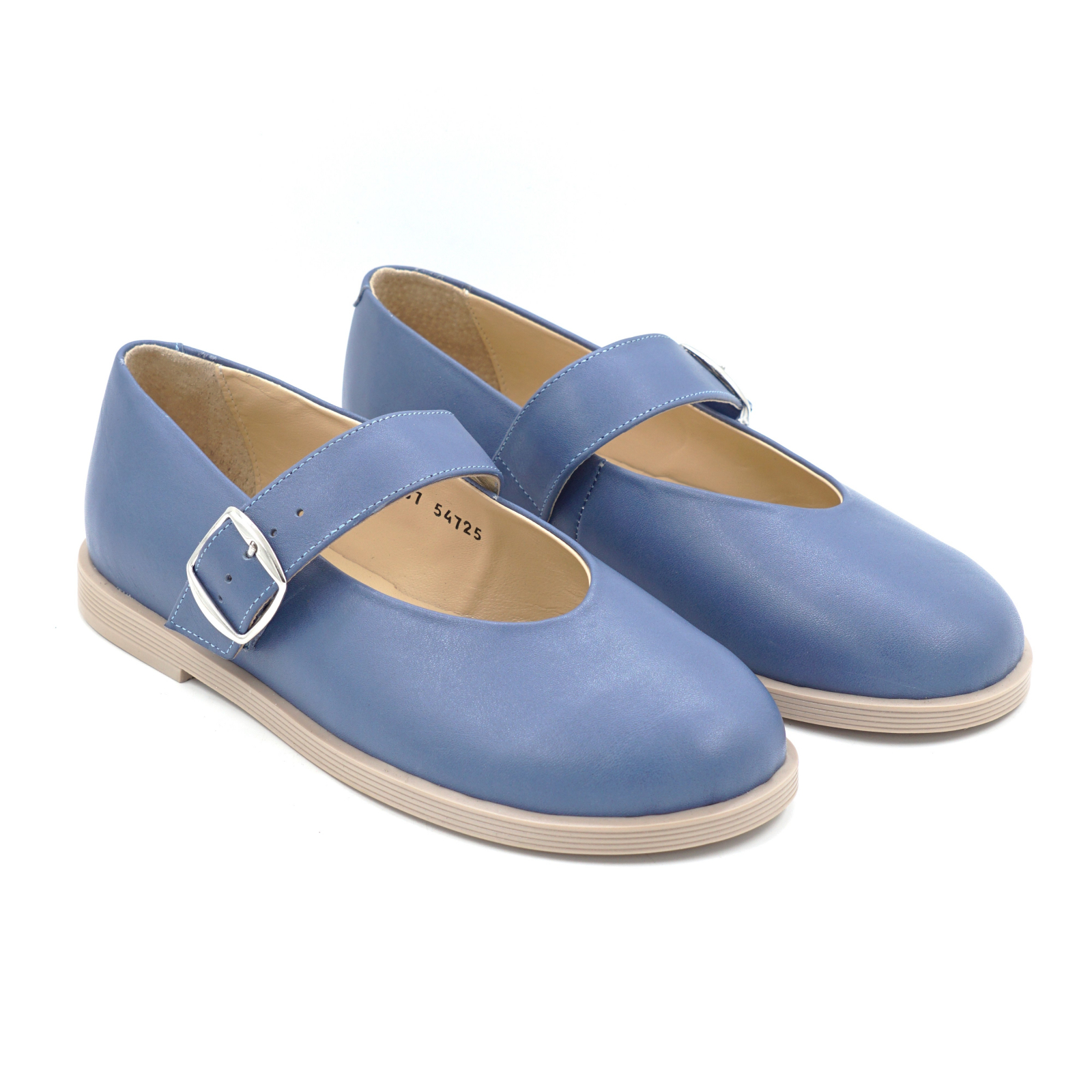 Pantofi dama tip barefoot din piele naturala albastra, cu varf rotund si talpa 1 cm 54725-1-25