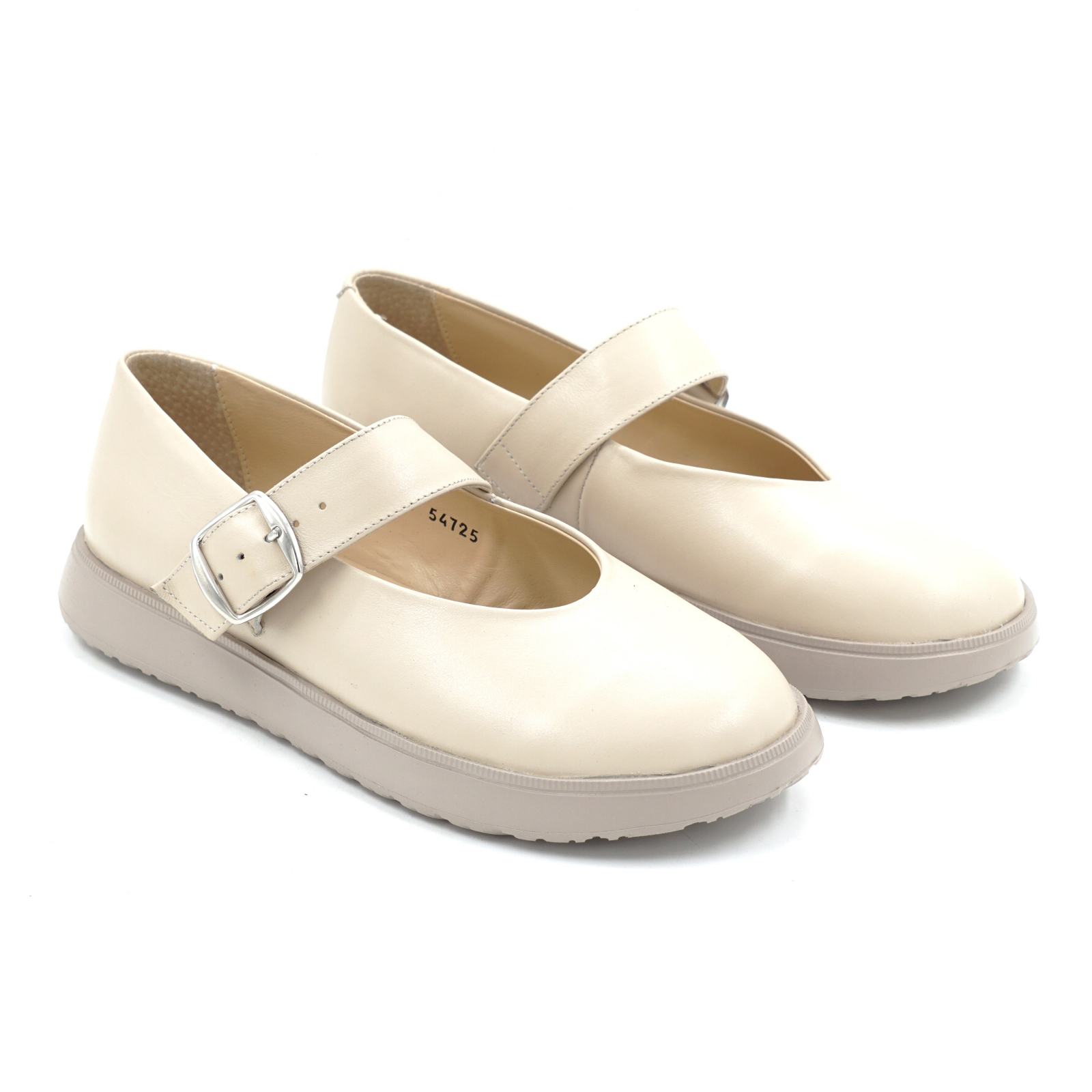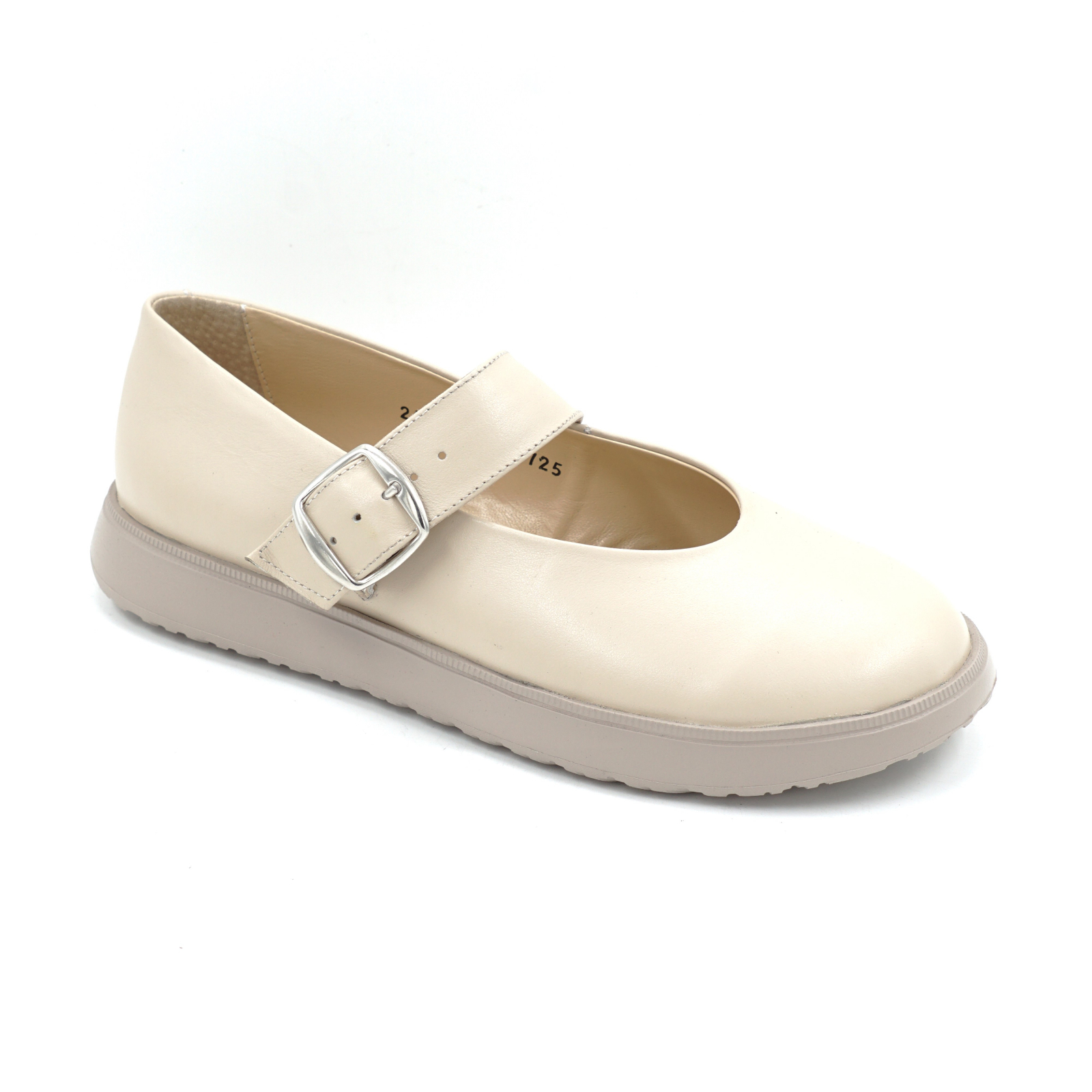 Pantofi dama tip barefoot din piele naturala nude bej cu varf rotund si talpa de 2 cm 54725-4-25