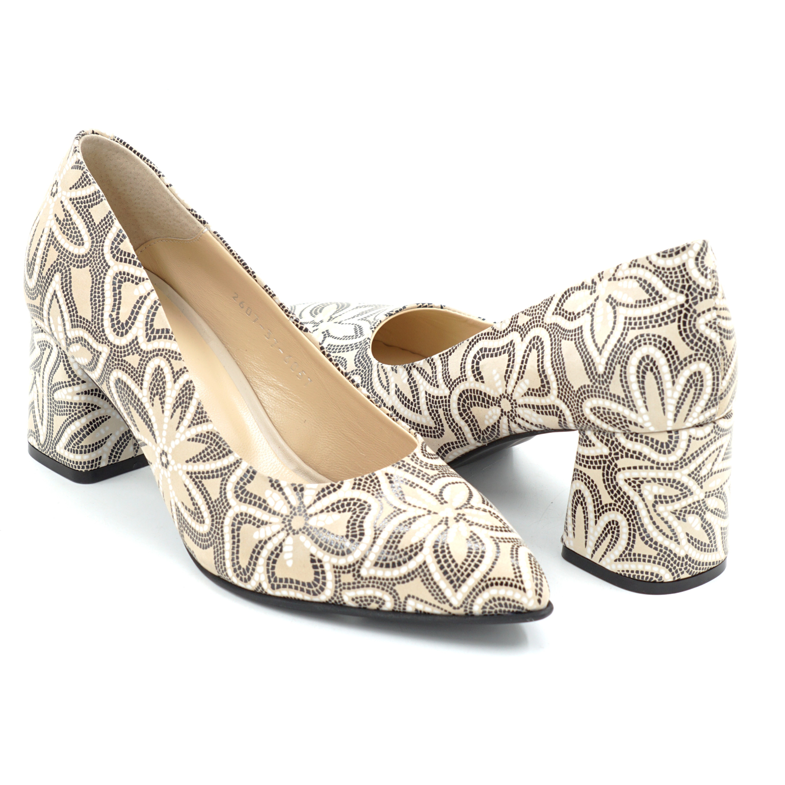 Pantofi dama din piele naturala nude bej cu imprimeu