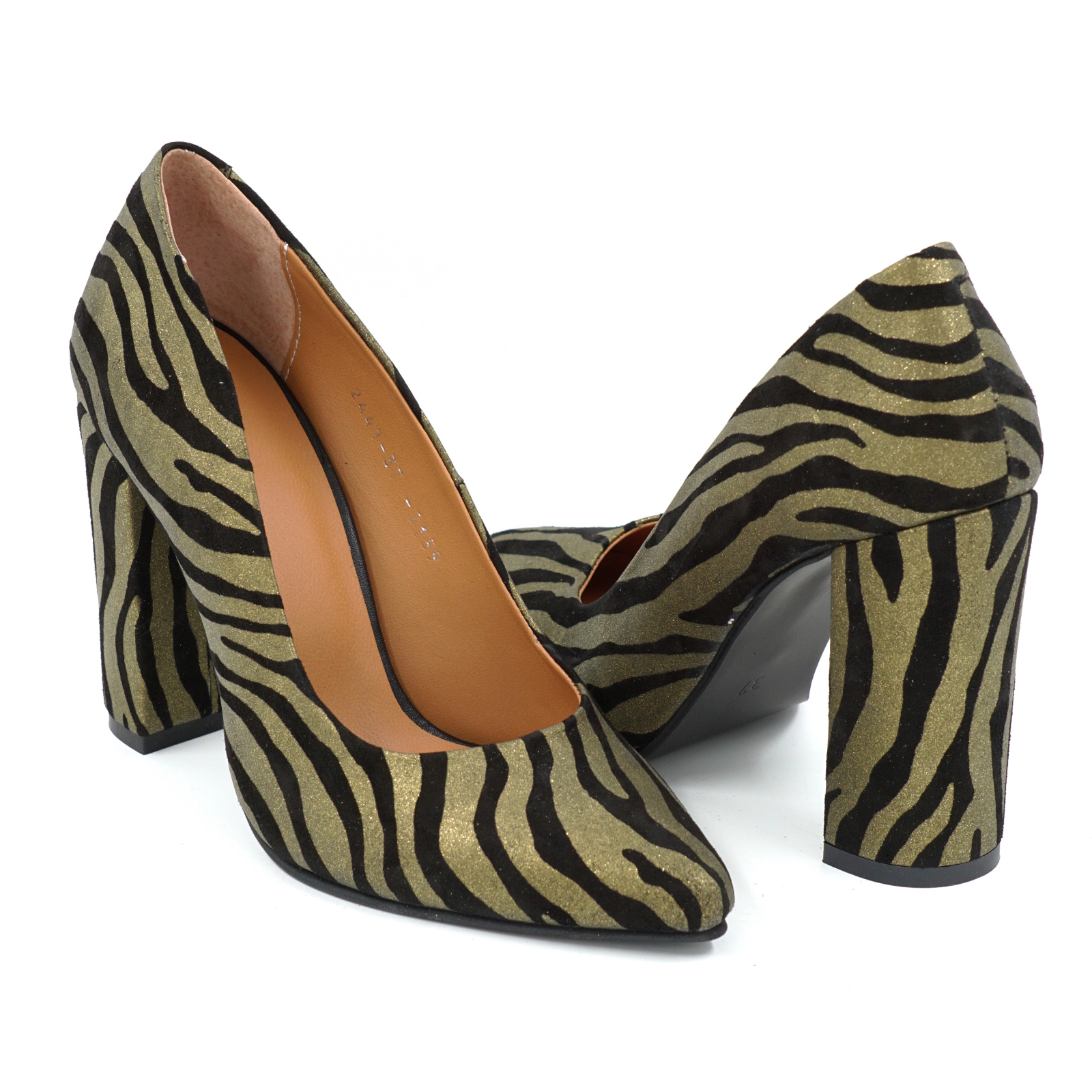 Pantofi dama din piele naturala cu imprimeu zebra auriu cu negru