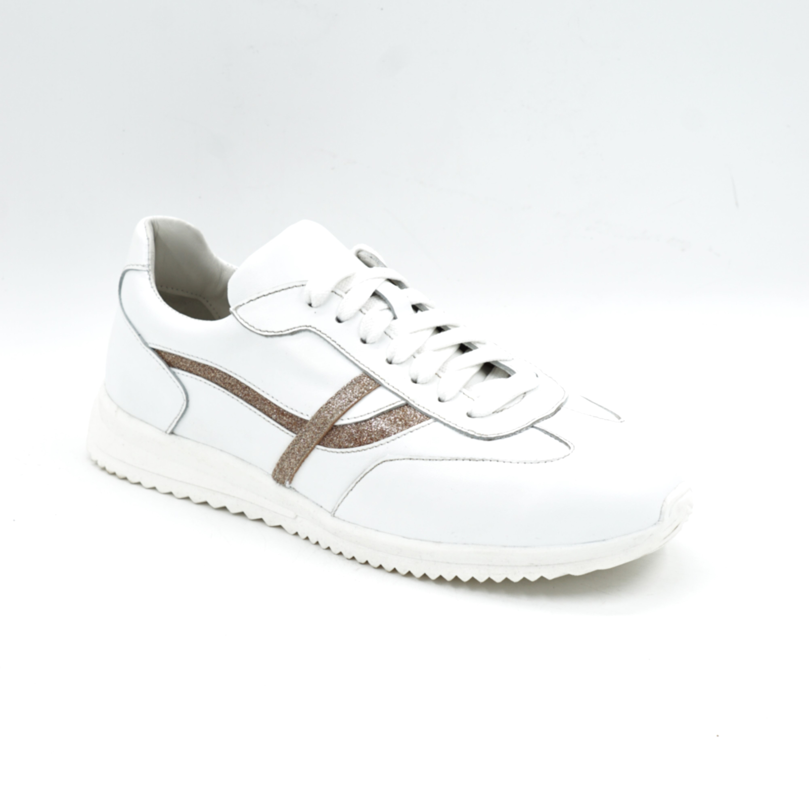 Pantofi dama tip adidas din piele naturala alba cu varf rotund si talpa de 2 cm 55825-25